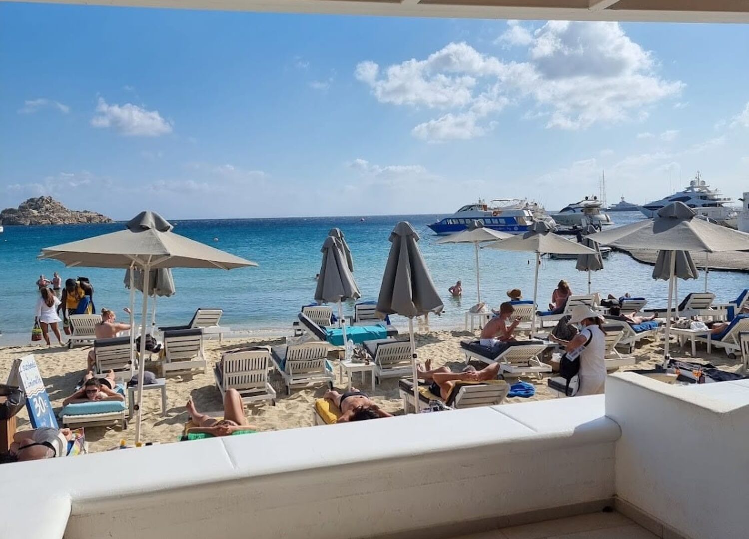 Absolutely loved this hotel. Right on the beach and it’s so beautiful and service is 10/10. Sunbeds are free for guests and the beach is breathtaking!!! Breakfast is right on the beach, it’s literally the perfect hotel. Bus stop is right by the hotel, we made the mistake of taking taxis everywhere before we discovered the buses. Do not take taxis in Mykonos it’s a waste of money just take the bus. Love this hotel!!!!!!
