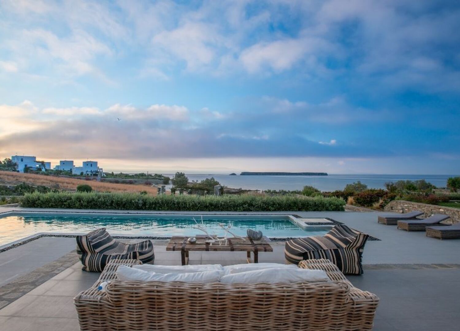 Paros Luxury Villas is a group of four private rental villas, located at the east side of Paros, a few minutes walk from the beautiful sandy beach of Golden Beach. Built on 11.500 square meters ground, the 4 building compound surrounds three large swimming pools. Designed and built following the Cycladic architecture the villas blend harmonically with the natural environment.The perfect destination with seductive view of Cycladic landscape and the beauty of the Aegean Sea. An oasis of peace and luxury just a breath away from the cosmopolitan pulse of Dryos. A refuge where design and relaxation are wonderfully combined, Aelia Paros Villas, is the perfect choice for families and group of couples.