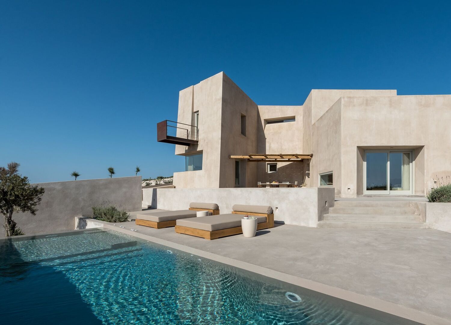Albus villas are designed to offer a luxury stay to people wanting to enjoy a relaxing vacation and high privacy. The modern architecture and minimal design gives way to the beautifully designed villas with clean lines and spacious accommodation. Constructed upon a high point in Pyrgos, giving views to the sea, the Akrotiri caldera and a stunning sunset view, the position is centrally located but retains its privacy, so that every aspect of the Island can be enjoyed.