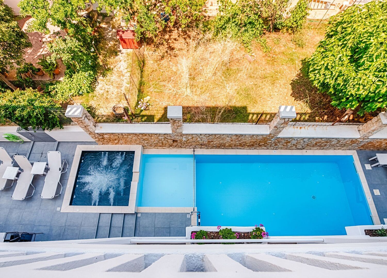 The town center is a 20 minute walk and the nearest sandy beaches of Chrissi Akti and Agioi Apostoli, a 10 minute walk. A shuttle bus to the city center runs every 20 minutes and costs 1,15 euro.