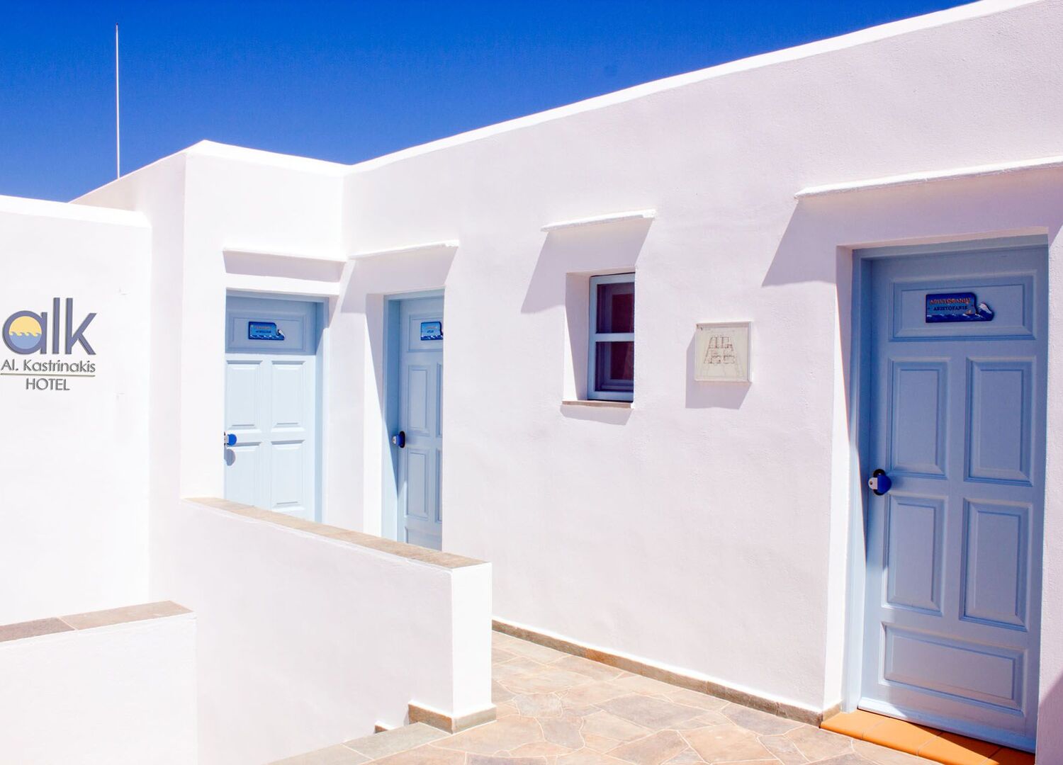 ALK HOTEL™ location is ideal because it is only 100 meters from the beach of Agia Marina which is the cleanest on the island 400 m from the center and 200 meters from the restaurants bars shops.