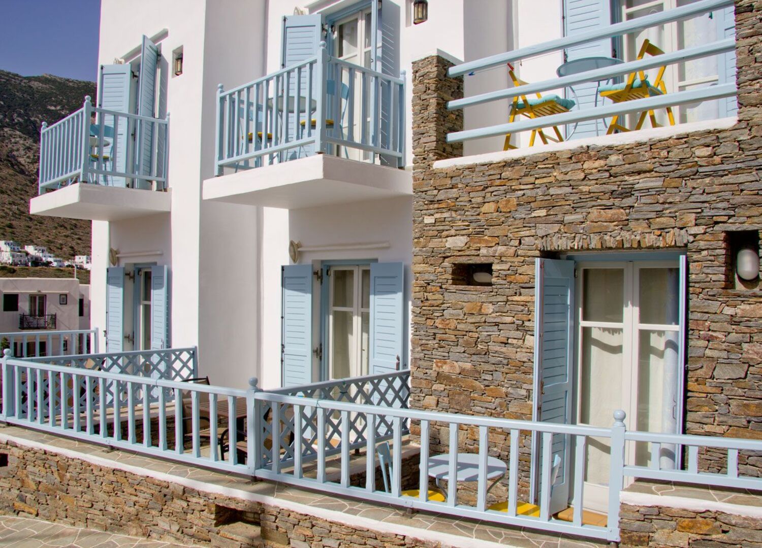 We enjoyed our stay here during our trip in Sifnos! We chose their 3 bedroom room which was perfect for our quick trip and had a nice terrace with a view and drying racks. It included free breakfast which was great! There’s tables outside with a view of the port for you to eat too! The hotel is walking distance from the port. However, when we left for our ferry, it was raining and the owner offered to drive us there with our luggage which was really sweet! I would definitely recommend this place and stay here again!