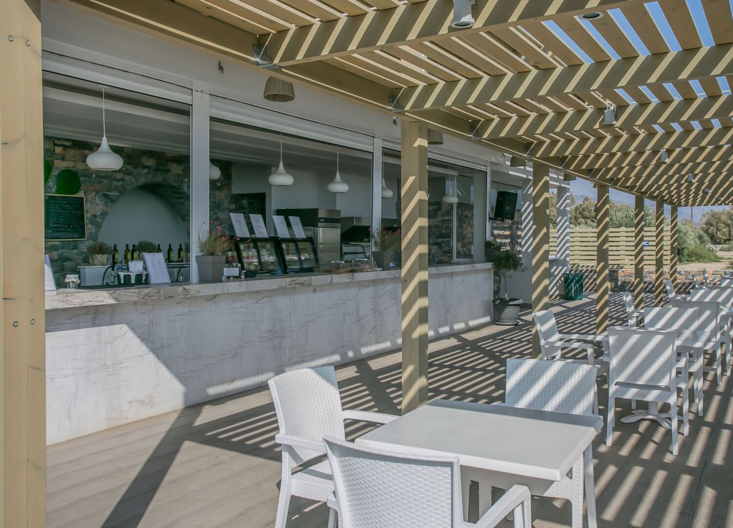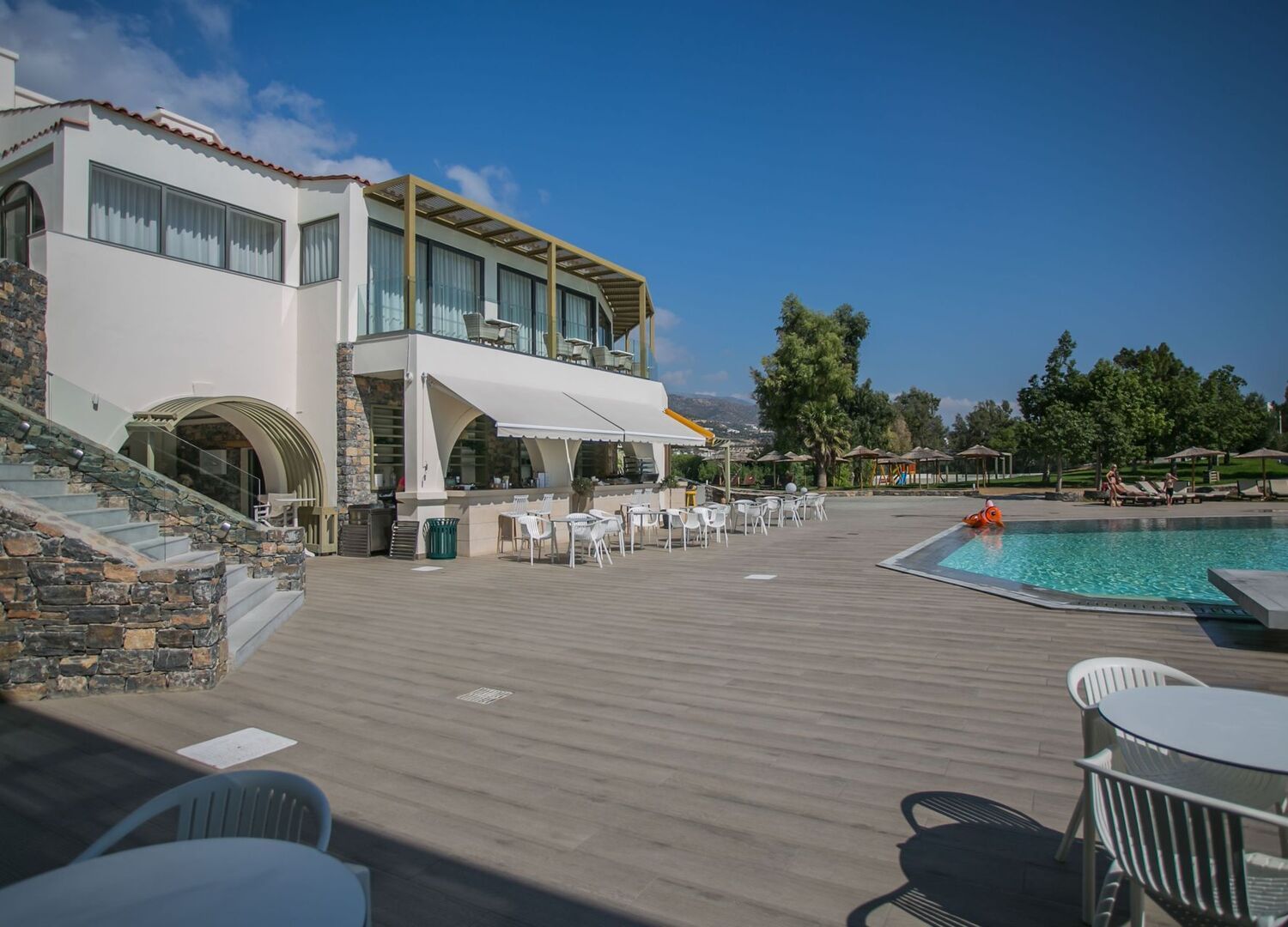 Each room features a private balcony or terrace with views of either the gardens or the sea. The architecture ensures every guest feels connected to the landscape while enjoying comfort and convenience. At the heart of the resort lies the 1,000 m² central pool, surrounded by olive trees and Mediterranean vegetation, offering natural shade and a refreshing atmosphere. Almyra Resort takes pride in its culinary identity, where Cretan traditions meet modern Mediterranean creativity. Guests can enjoy seasonal menus based on fresh, local ingredients, with flavors that celebrate the richness of the island.