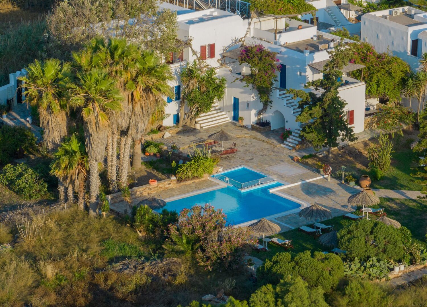 Antonina Hotel is a charming and peaceful hotel located just a one-minute walk from Agia Anna Beach in Naxos, Greece. The hotel features well-maintained gardens, a swimming pool, and is the perfect choice for a relaxing summer vacation. Agia Anna is a gorgeous resort with a stunning beach, shallow waters, sun beds, bars and restaurants right on the beach, and beautiful sunsets behind the neighbor island of Paros. Antonina Hotel offers a perfect setting for a memorable holiday on Naxos Island.