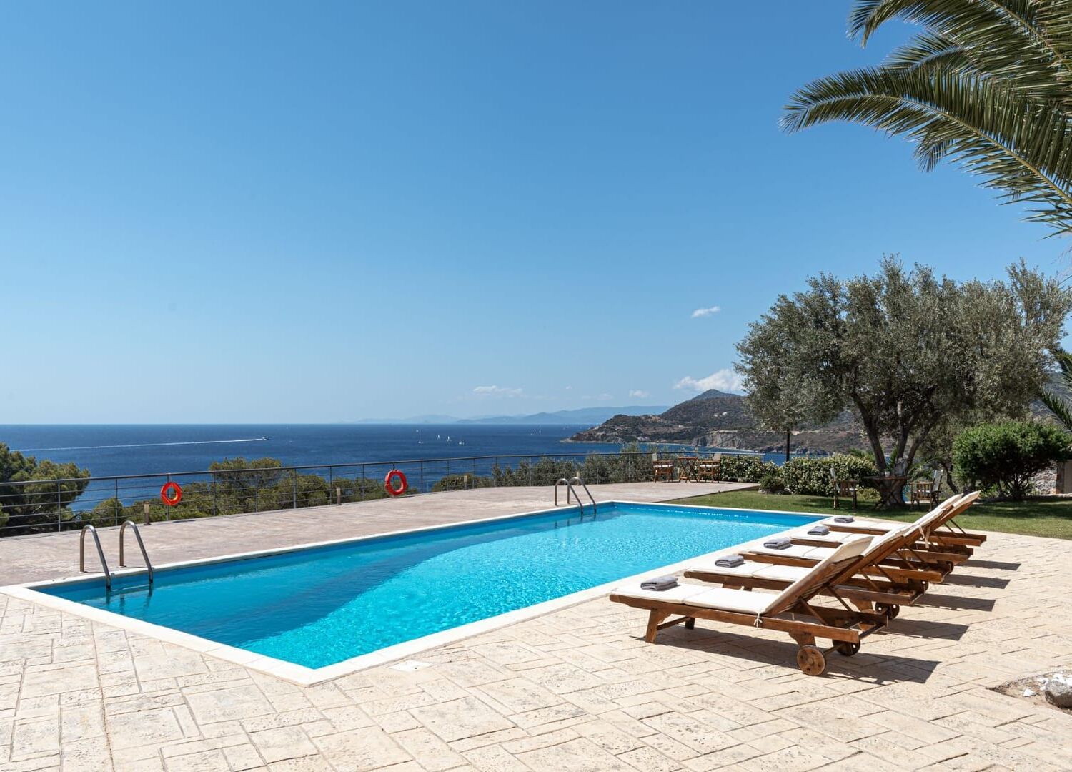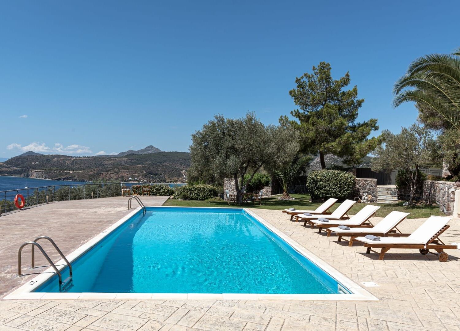 Spend your days exactly as you wish with your family or loved ones in this 390 sqm holiday home. Early birds will find the nearby beach a great spot for a morning swim, while the young ones will have plenty of space to use as their playground – as they play, lie back and enjoy the summertime. Come evening, enjoy an aperitive at one of the two indoor living areas before heading to unwind. With its eight lovely double bedrooms, (five of the bedrooms have their own ensuite bathrooms), Aphaia Villa is well suited to families or groups of friends seeking a peaceful sea view retreat.