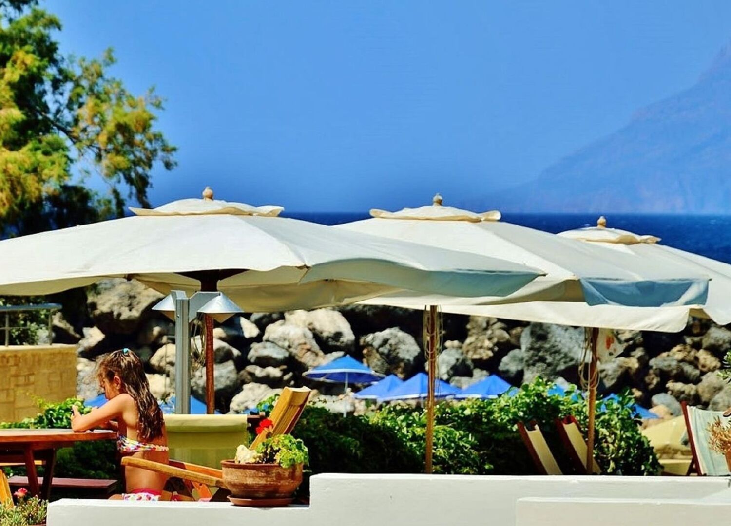 Clean rooms, welcoming staff, and direct access to a very nice beach, ideal for families. We stayed one week with a toddler (2 years old). Highly recommended. Only down side is that there is not much around and a car is needed.