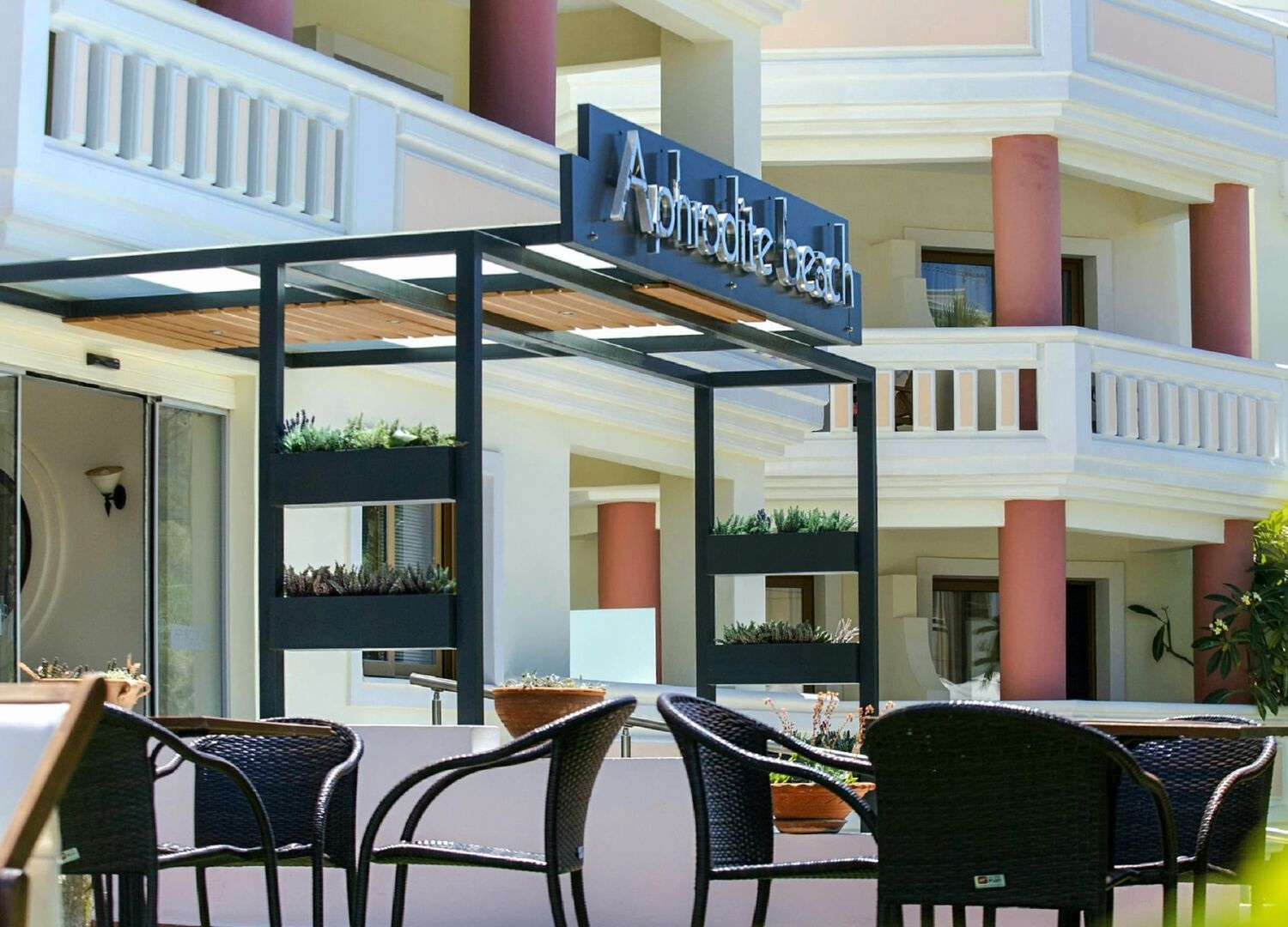 At Aphrodite Beach Hotel the hospitality standards are high. Our guests are offered all modern comforts and services. The 24-hour Reception is always at your disposal upon arrival and settlement in your room. Once settled, explore our premises, enjoy a refreshing juice or cocktail at the beach bar or simply relax by the pool. Enjoy a swim in the deep blue waters of the sea and indulge in the magic of the scenery!