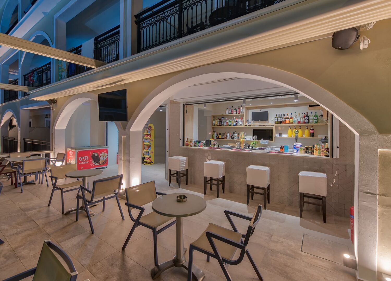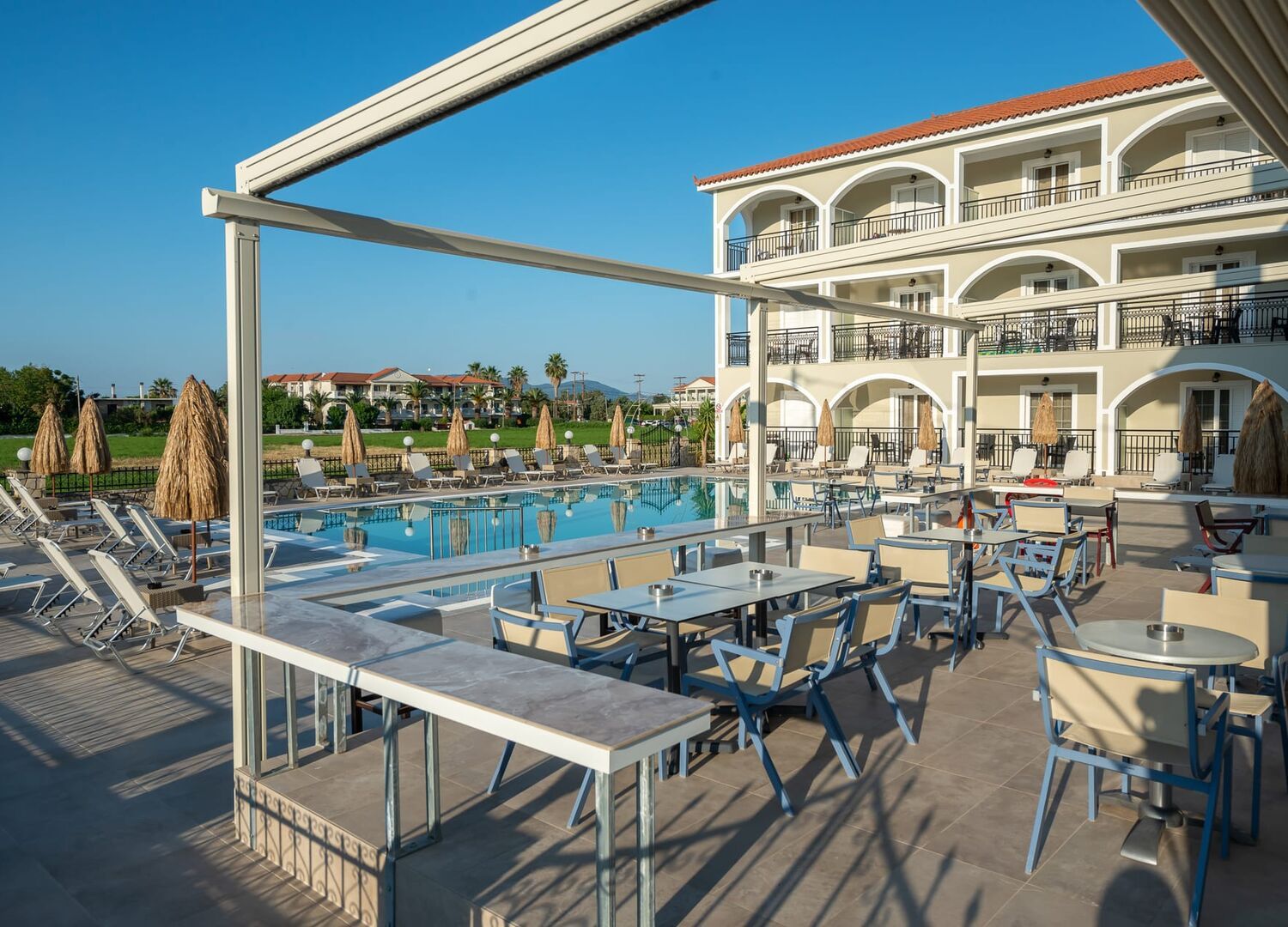 Located in the centre of Kalamaki. We had a familyroom on the streetside. No problems with noise. They clean the room everyday. Very helpfull and give good visiting tips. Pool is open to all. Poolvar has great food and drinks. Great value for money.