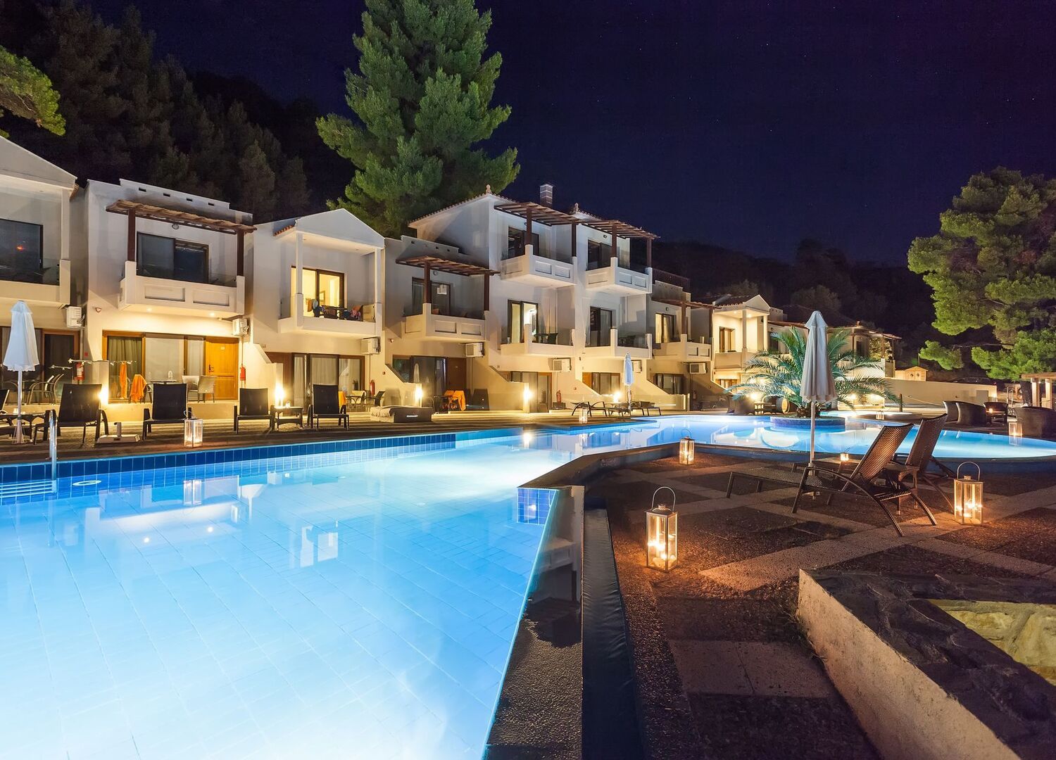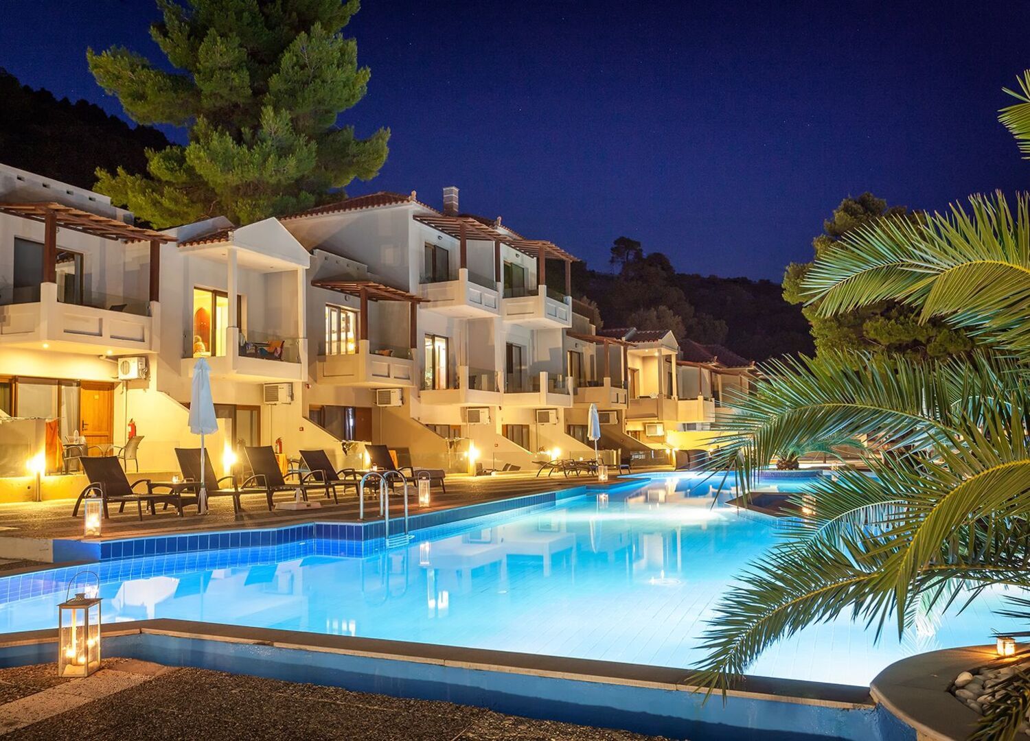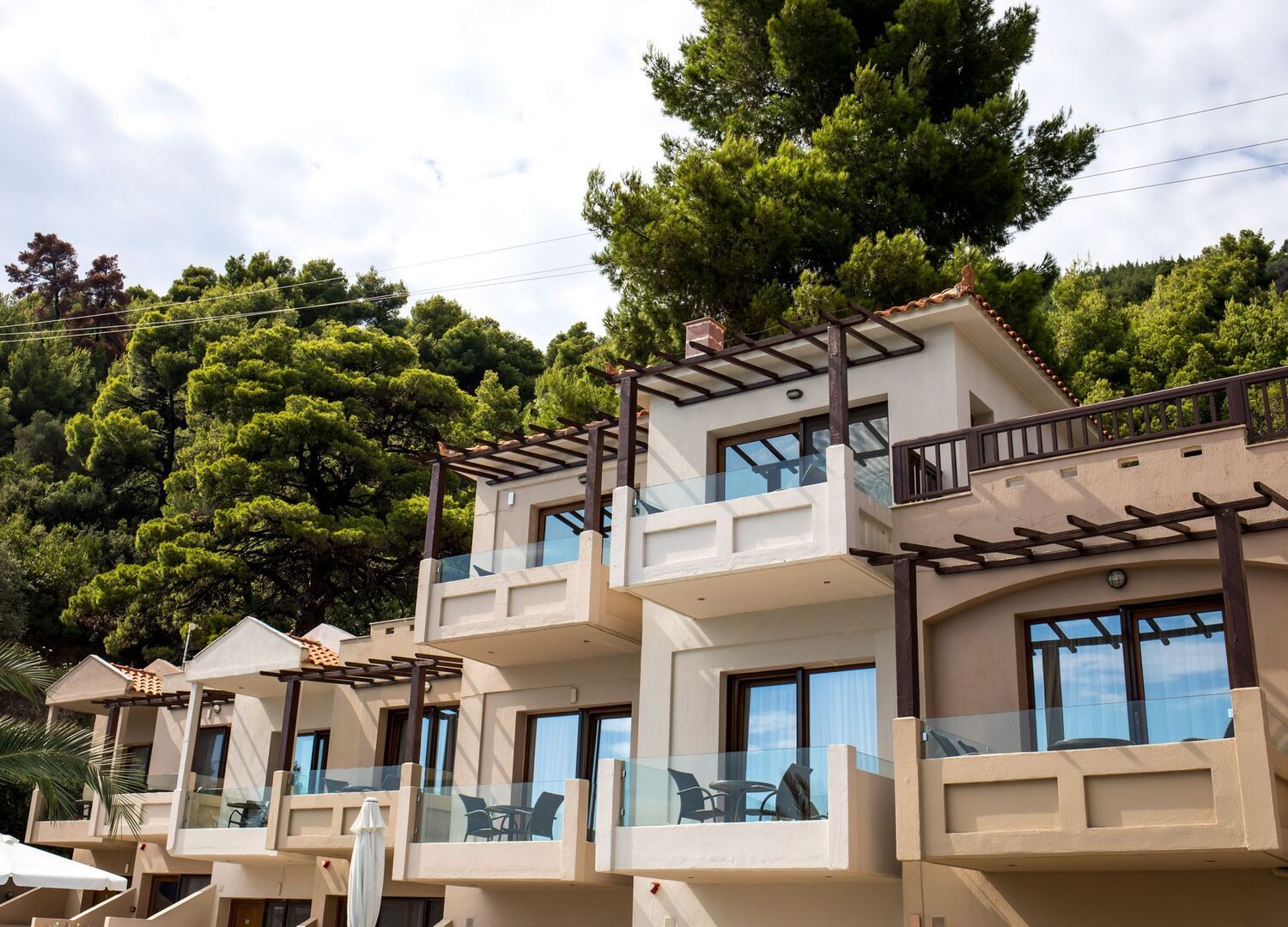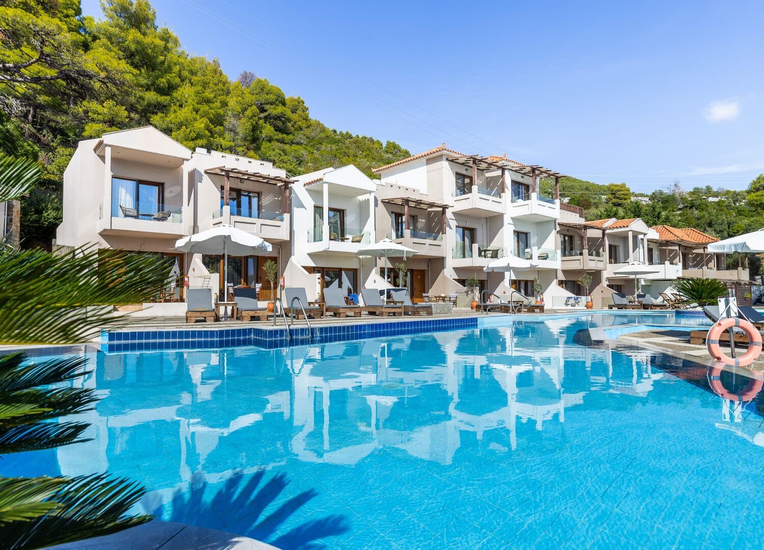 Located in one of the most enchanting landscapes of Skopelos island, in the green bay of Panormos and at a distance of 12-16 km southwest of Skopelos Town, the 3-key "Blue Green Bay" property was created in 2009. The complex is built in the peaceful embrace of the cove, on the Blue Flag awarded beach and is a real oasis of relaxation, comfort and enjoyment of the sea.