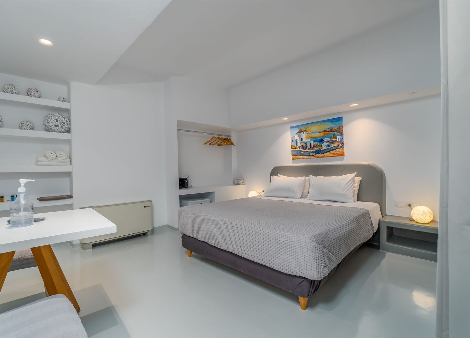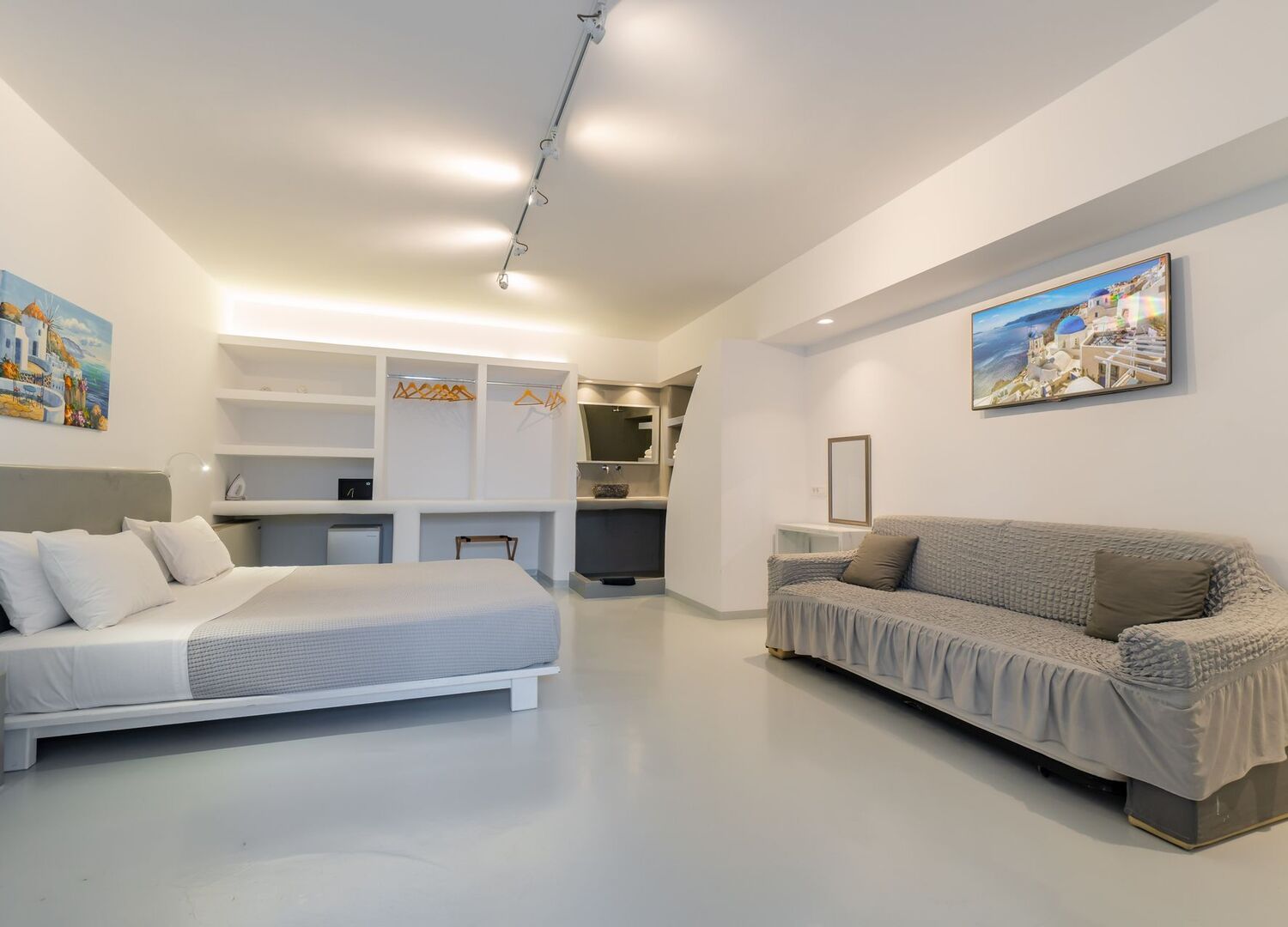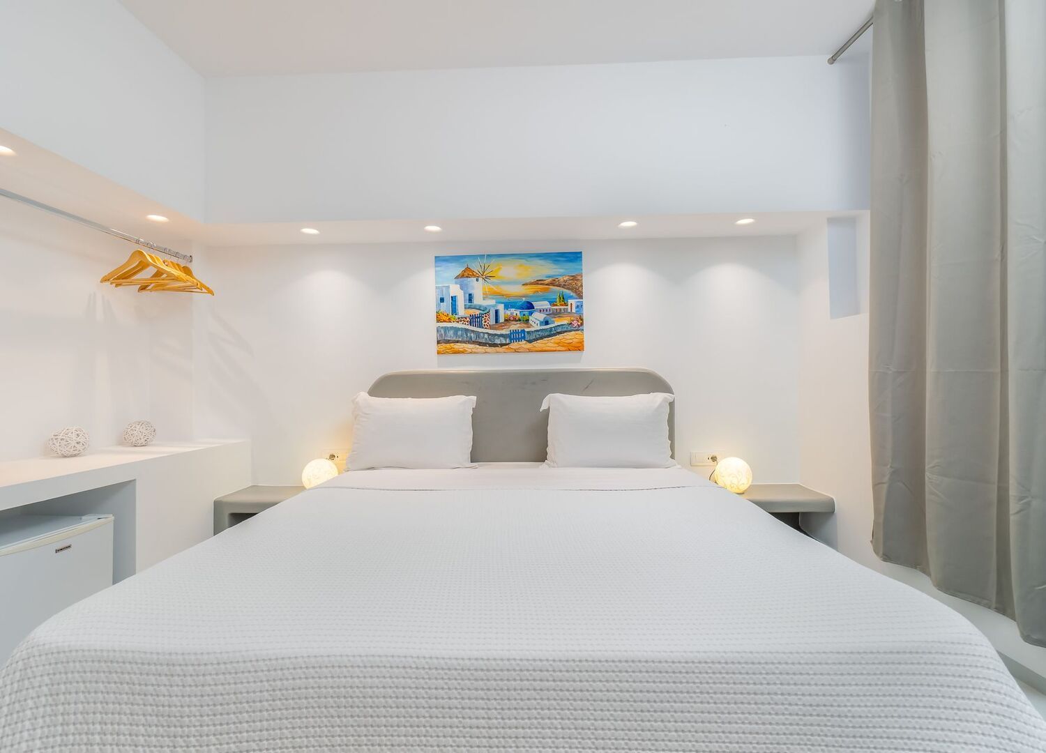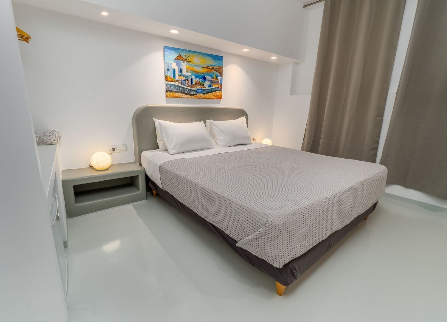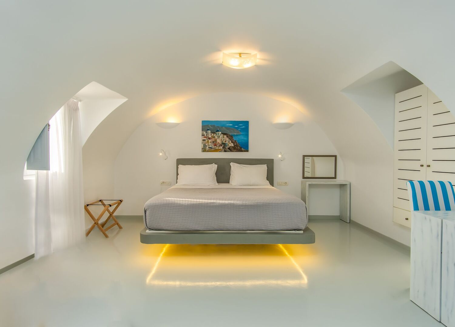 Boutique suites with plenty of amenities, spacious and quiet rooms in the center of Fira. For business or leisure, it’s up to you. The famous caldera with the volcano view and the sunset is only a five-minute walk from the suites. Surrounded by restaurants, cafes, bars and clubs you only need to walk a few meters to get into the fun of Santorini! Spotted exactly in the famous market of Fira, with the narrow alleys, all the stores await you to shop traditional products, fashion items and much much more…
