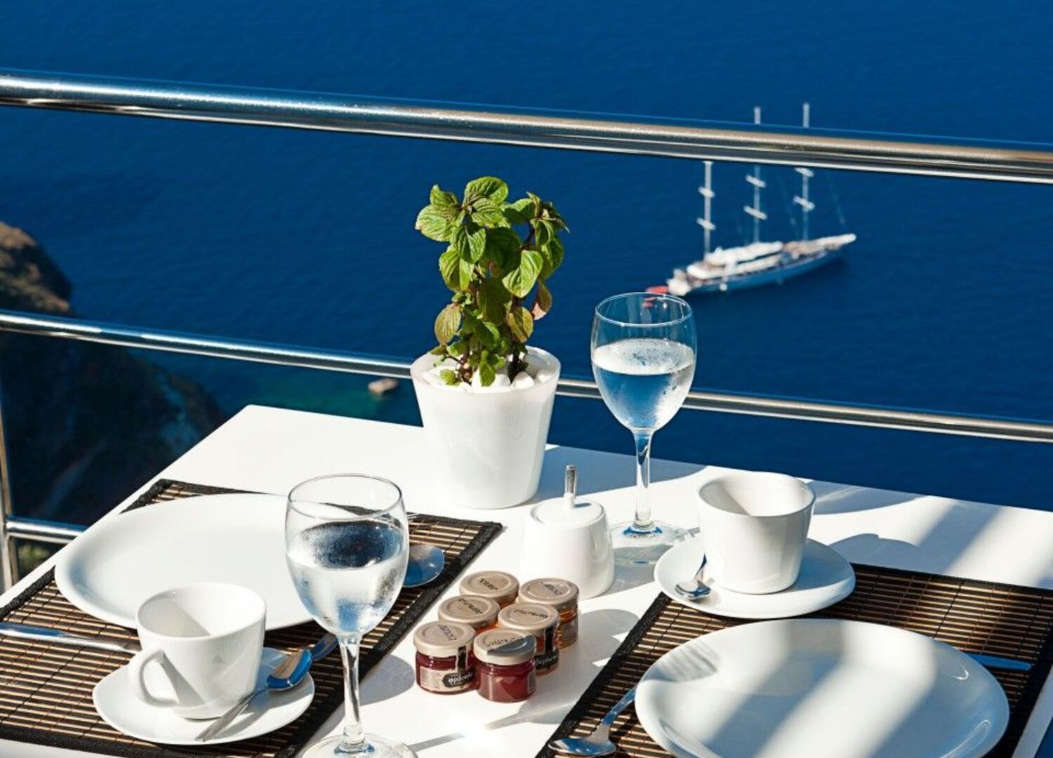 The hotel has an Infinity Pool and Sunbathing terrace with impressive views to the Caldera and the town of Fira falling from the cliff. The Cosmo Pool Bar located next to the Pool, serves cooling drinks and a delicious variety of light food.