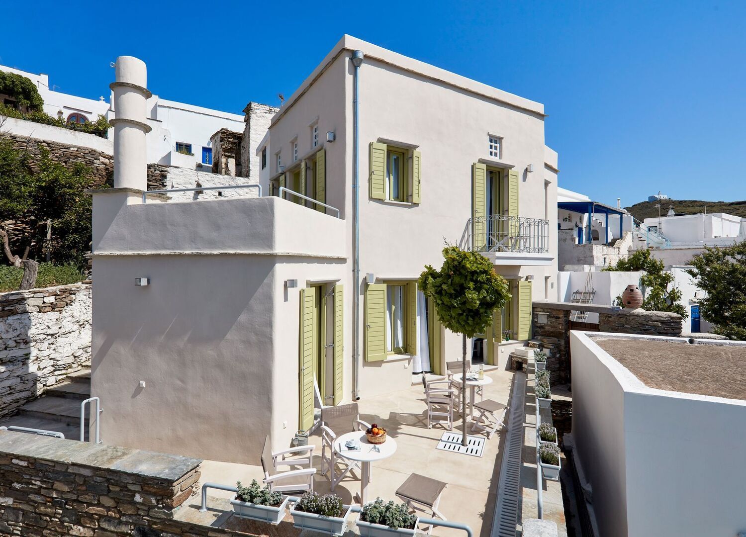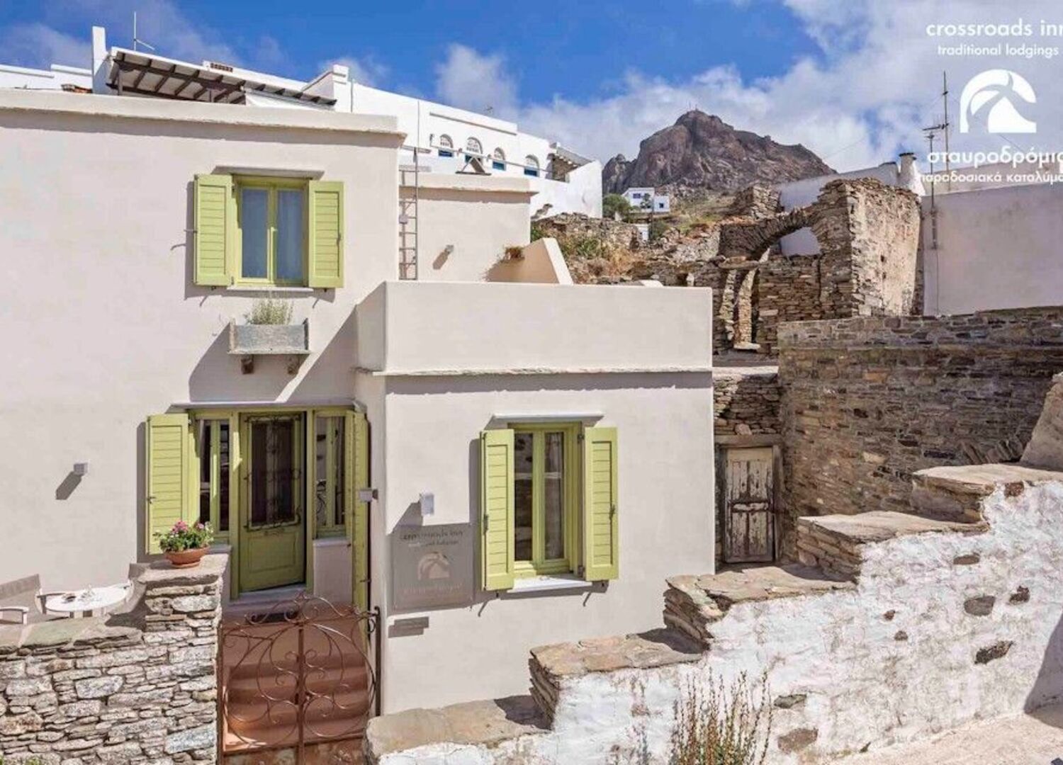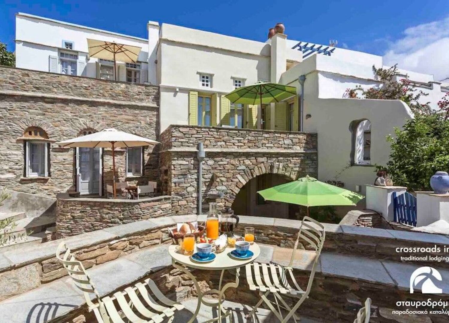 Our Crossroads Inn is a B' class hotel of the type "Traditional lodgings", operating at Tripotamos traditional village of Tinos Island, since 2009. It consists of traditional, restored houses, offering a comfortable stay, for couples or families, within the island’s heartland. The houses are spacious and well decorated, suiting to the land’s aesthetics and our staff is always ready to take care of everything you need, with such attention to detail, rarely experienced. Our aim is the enrichment of the guests' choice to live their holidays in the peaceful and unique environment of Tripotamos village, gaining a sense of residence, "at their own home in a Cycladic village". Our site www.crossroadsinn.gr gives you all the necessary information for the hotel, the island, etc.