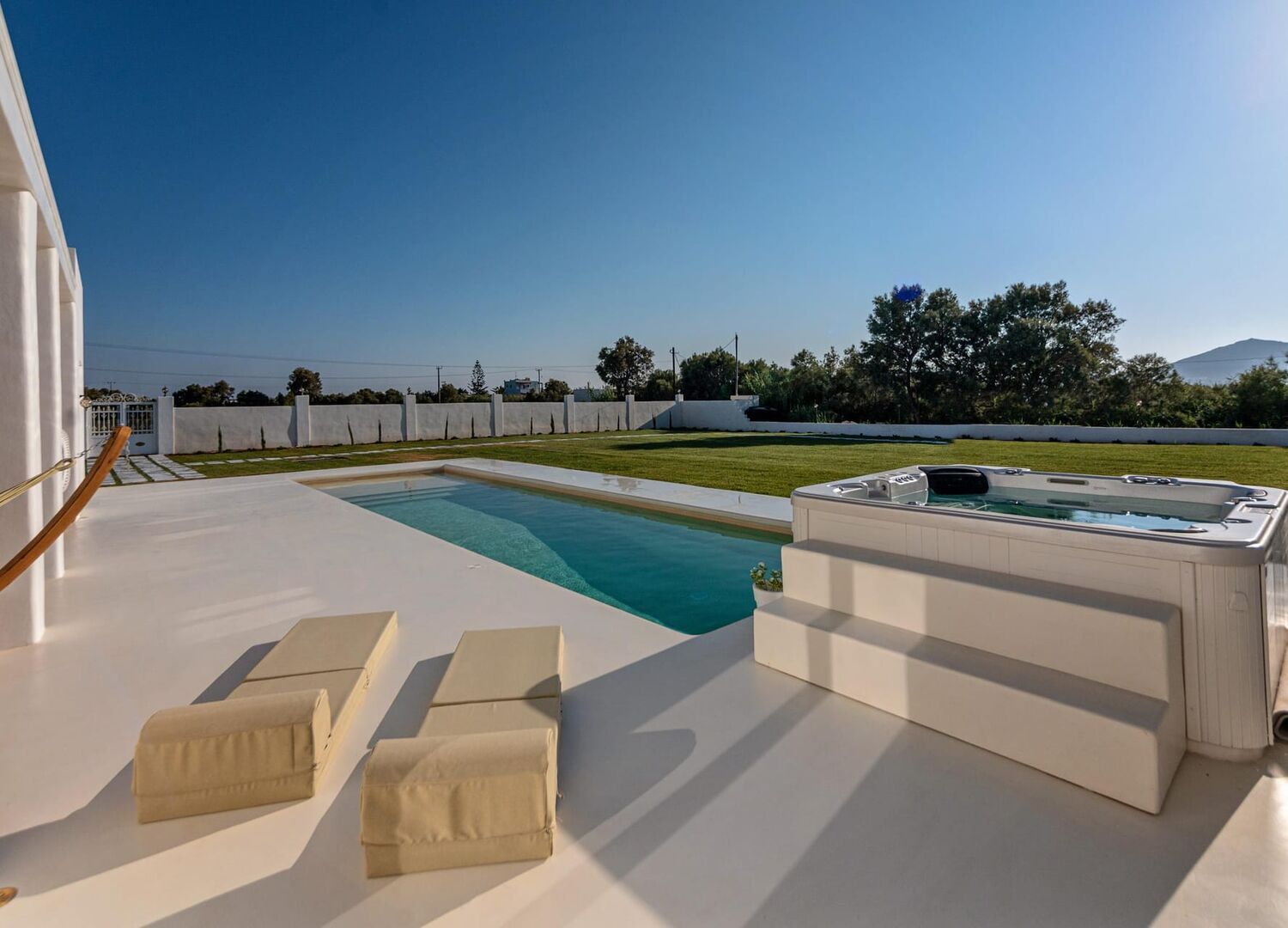 This establishment can comfortably host up to 6 guests, who may enjoy dining inside or outside, swimming in the private outdoor swimming pool, enjoying the hot tub & sauna and the beautiful island sunset at the garden or the terrace.