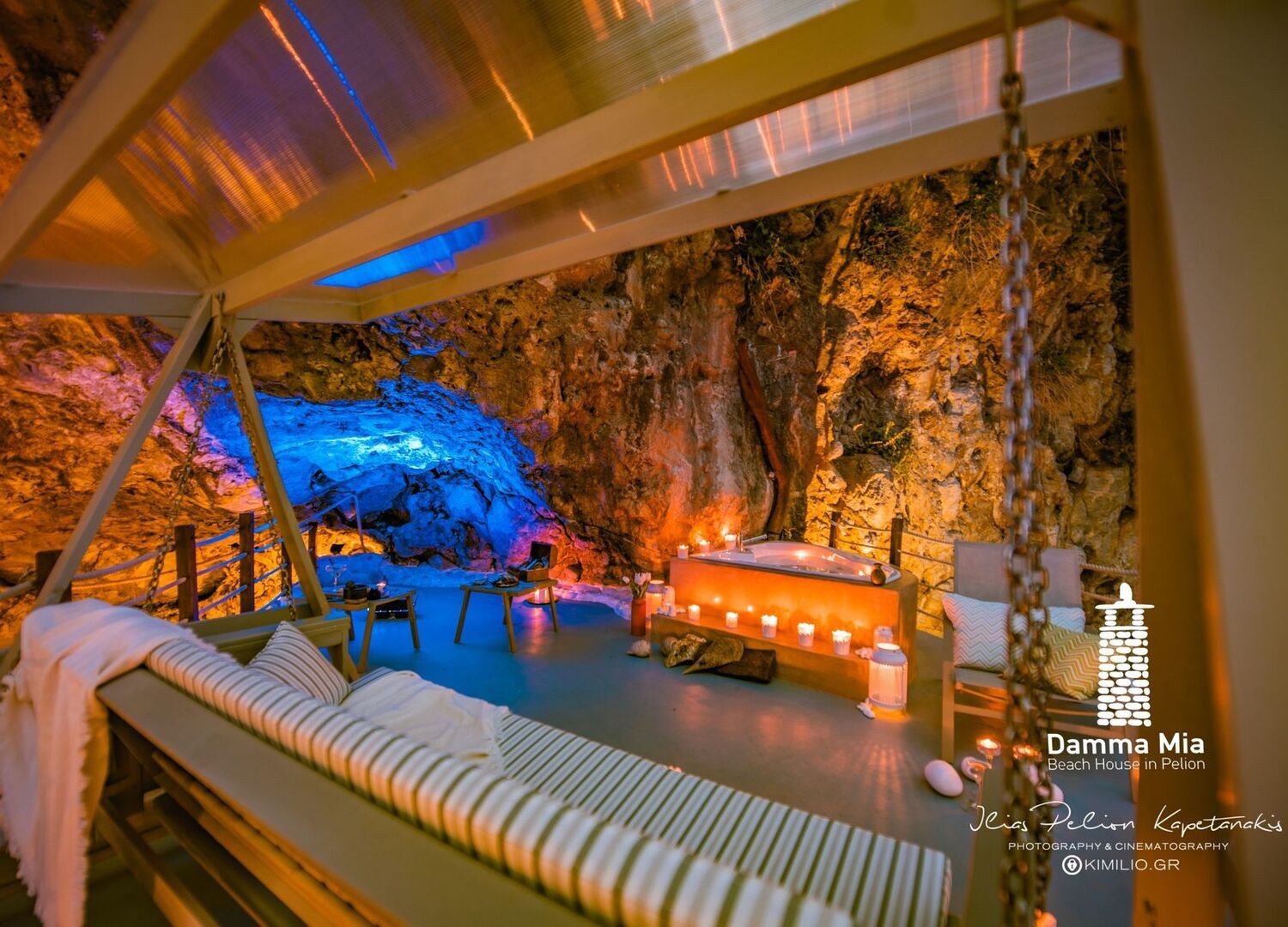 Damma Mia, renowned for its curved indoor “Cave”-shape, is located in Damouchari beach at the foot of Mount Pelion. It was originally built before 1900 underneath the Venetian Castle and opened its doors in 2014. This tourist accommodation is the ultimate choice in stylish beach front living. A stand-alone house constructed with local materials creating a cozy place entirely in tune with the environment.