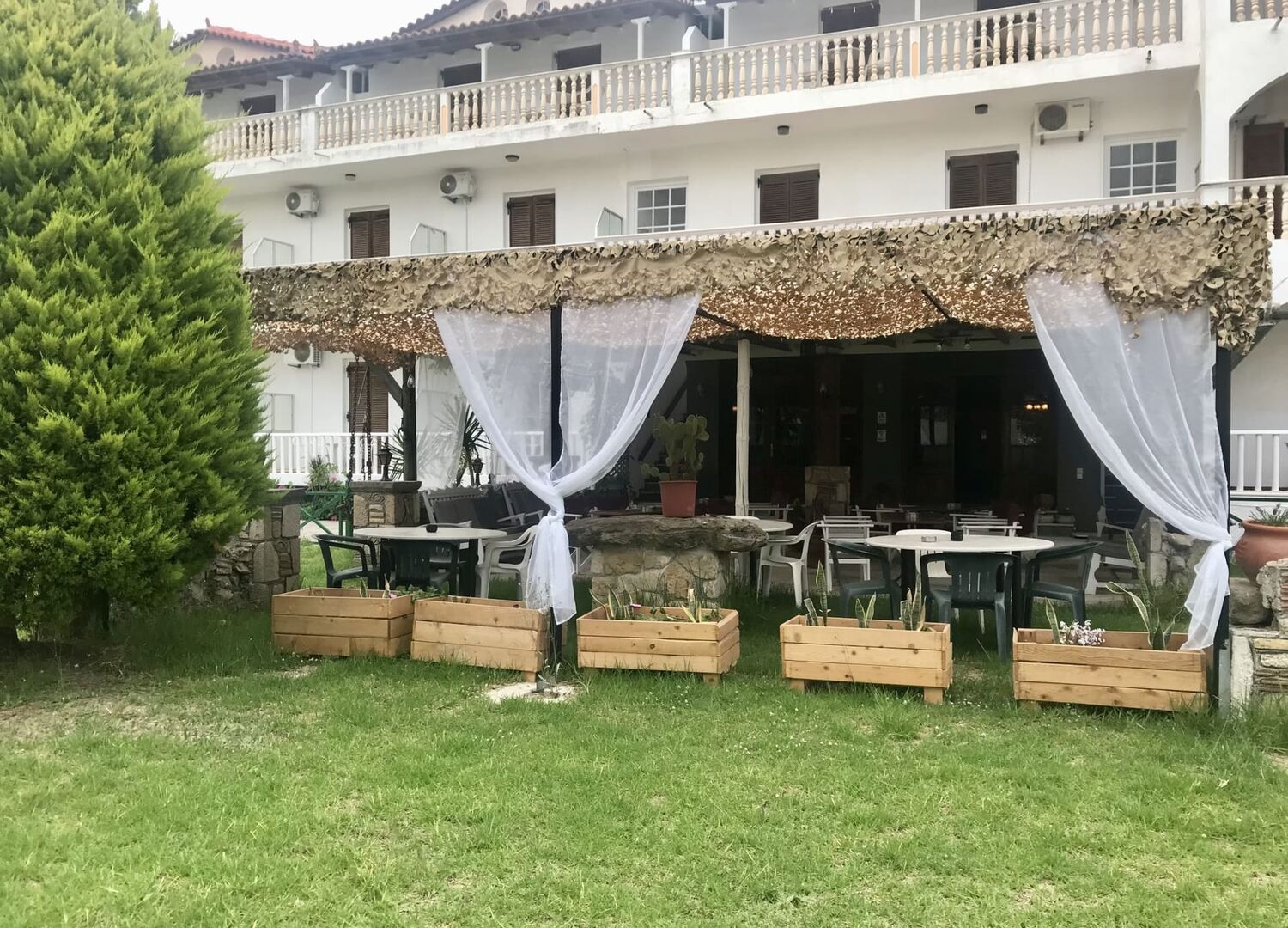 Good - The beach, shops, and restaurants were close by. - The dog was cute. Bad - The room wasn't clean even after "cleaning." - The shower was so small that it was impossible to use it properly, and the bathroom flooded during showers. - All the faucets were covered in limescale. - They didn't refill the soap. - We didn't get toilet paper on the second-to-last day. - The trash bin wasn't emptied every day. - The mattress was so worn out that the springs were poking into our ribs. - There was no air conditioning in the room for free. - The breakfast was very minimal, and if we went a bit later, there was hardly anything left to choose from, even though there was only one other family besides us. - There was fur on the croissant at breakfast (they have a dog). - The bed linen was stained and had several cigarette burns. - There was a constant sewer smell in the bathroom coming from outside. - The water at the sink and in the shower was salty, so we couldn't wash our faces with clean water. - There were two WiFi networks, but both worked very poorly, sometimes one, sometimes the other, and sometimes neither. - There was practically no staff, just one cleaning lady and the owner, who unfortunately doesn't speak English.