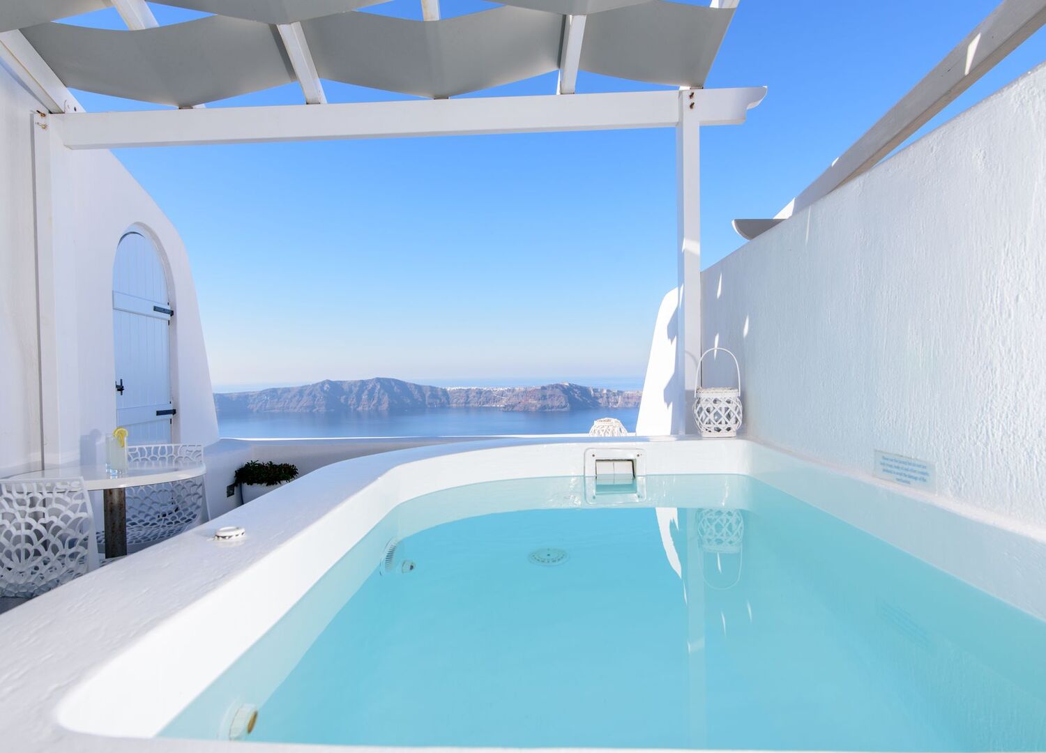 Great views from the balcony. Our outdoor pool was heated at all times. Breakfast was also pretty good Thoroughly enjoyed my stay and would recommend. our receptionist was also lovely. As with most other hotels on the island, you won’t have complete privacy from your balcony so just be prepared for that. As the Imerovigli area is situated quite high, it offers nicer and higher views of the caldera in my opinion.