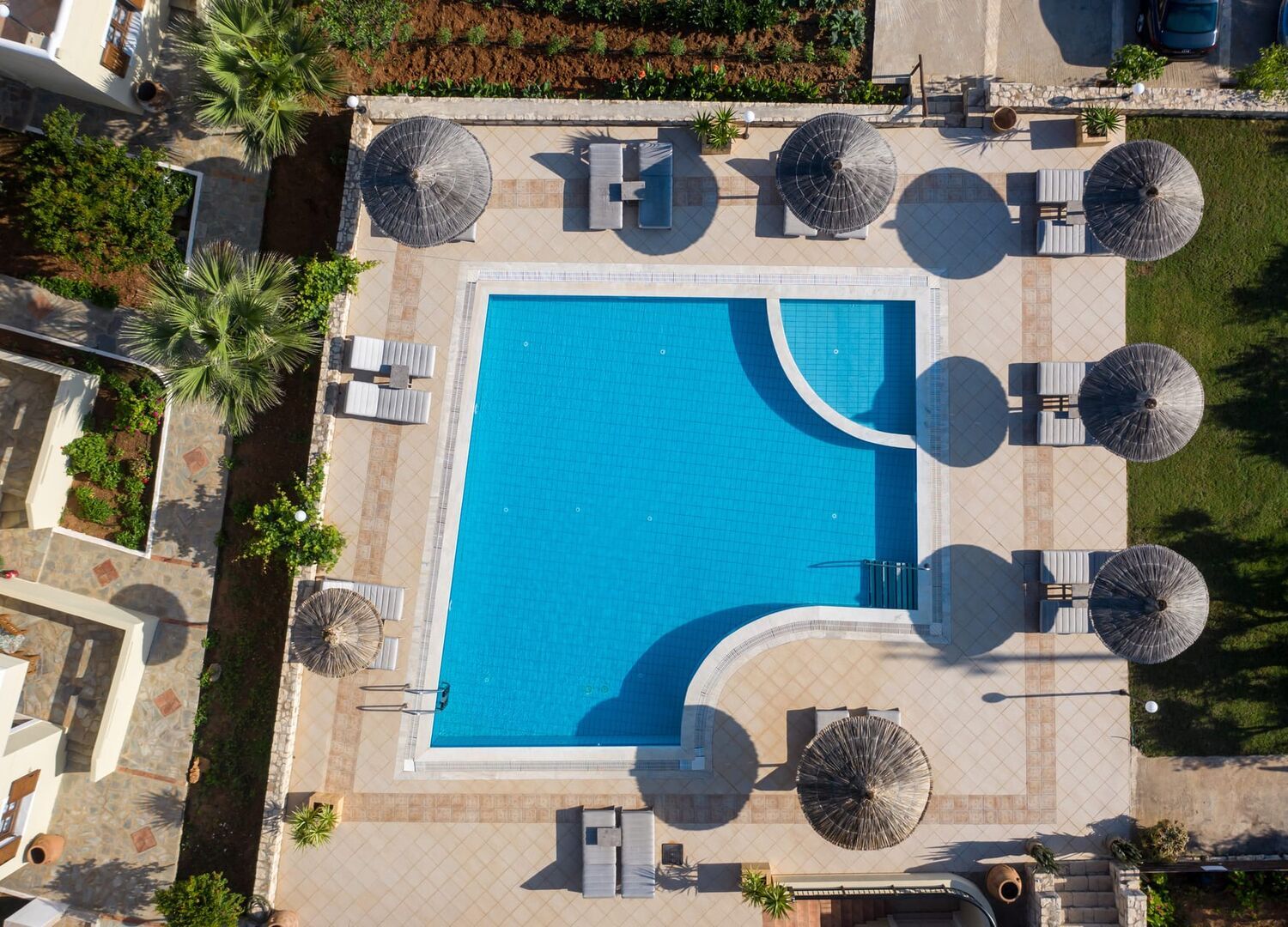 New rooms, 20 minutes from most beach clubs and Heraklion port/airport, rooms with private pool were nice. Breakfast was good, but not included.