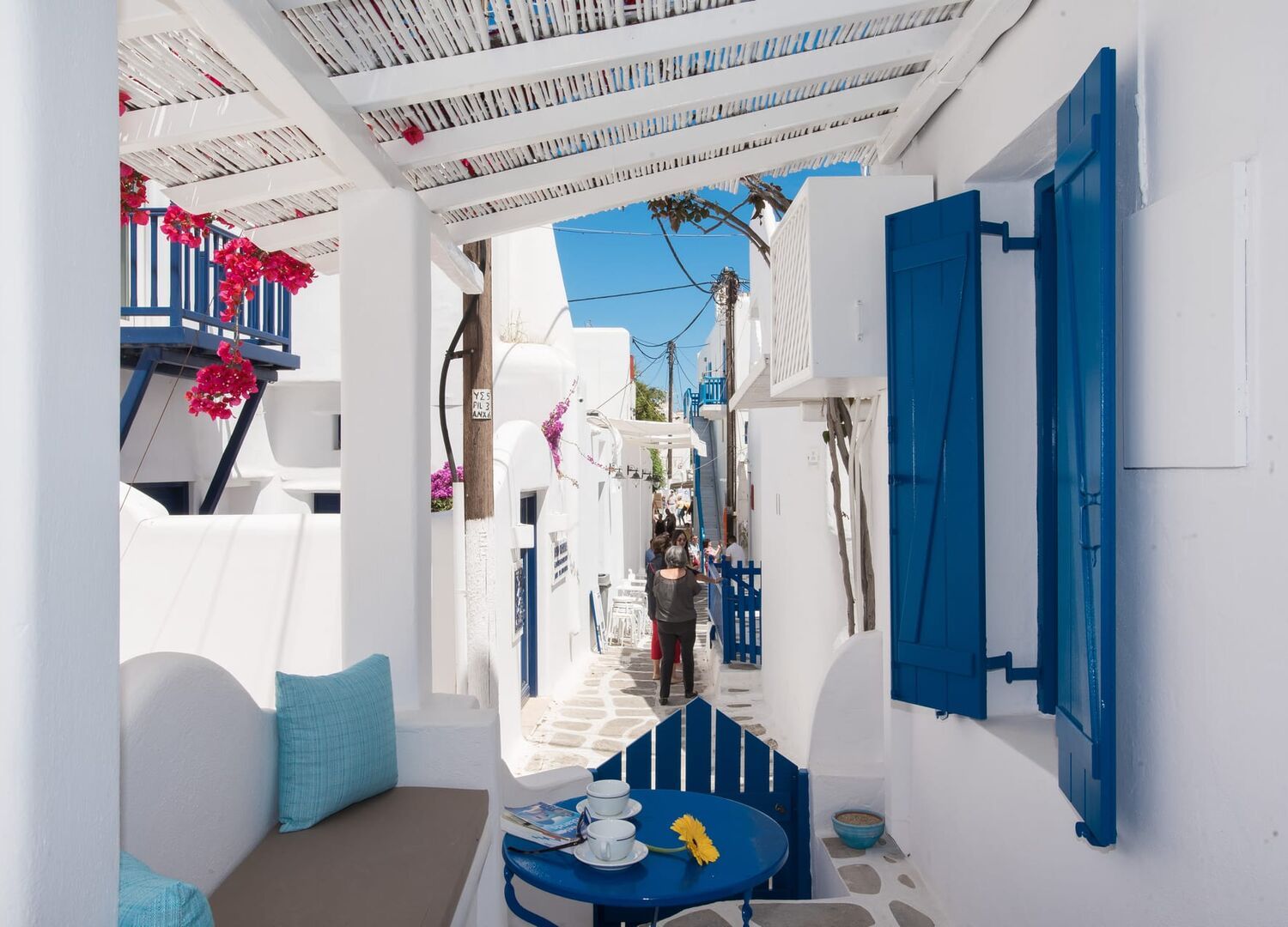We are located inside the heart of Mykonos Town, mere steps away from all the Restaurants, Clubs and Shopping areas.
