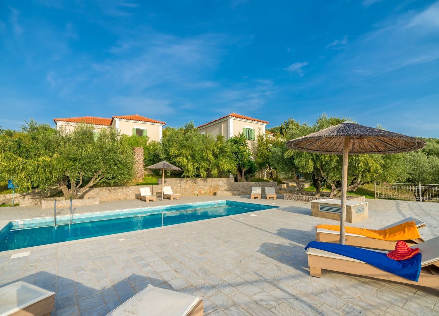 In a beautiful setting of an olive grove, sits a very well-thought-out development of villas, some with private pools. It is run by a group of very responsible and professional people who are attentive and very responsive to their guests. It is not waterfront but all villa terraces have a view of Navarino Bay and the beach is only 2 minutes away. I highly recommend it!