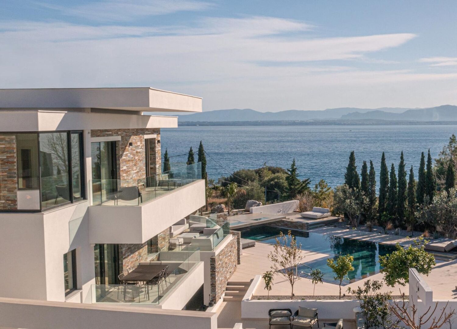 Experience unparalleled luxury at Elia Cove Luxury Villas & Residences, a breathtaking retreat where modern sophistication meets the natural beauty of the Greek coastline. Designed for ultimate comfort and exclusivity, this estate consists of two private villas, each offering a seamless indoor-outdoor living experience.