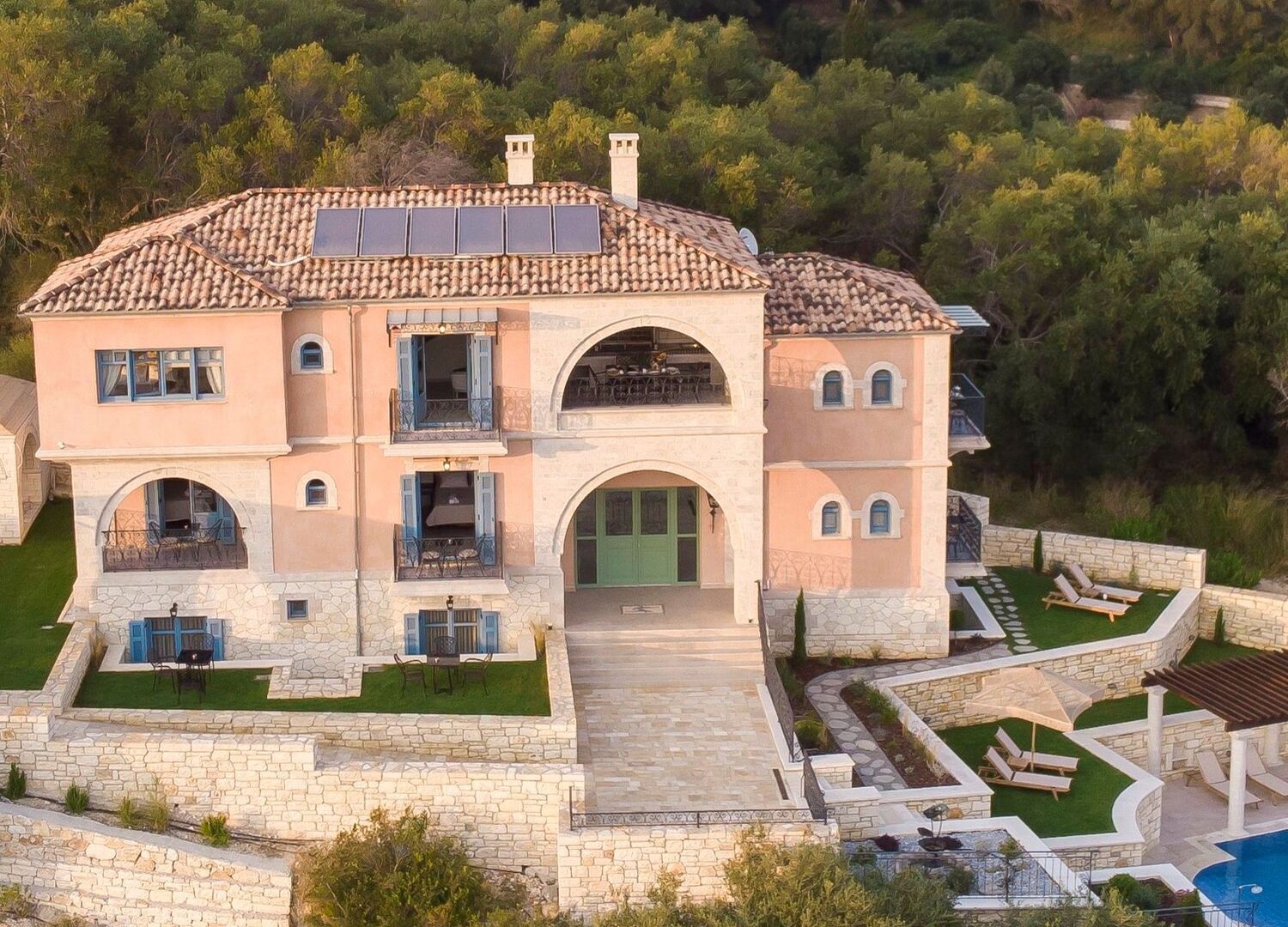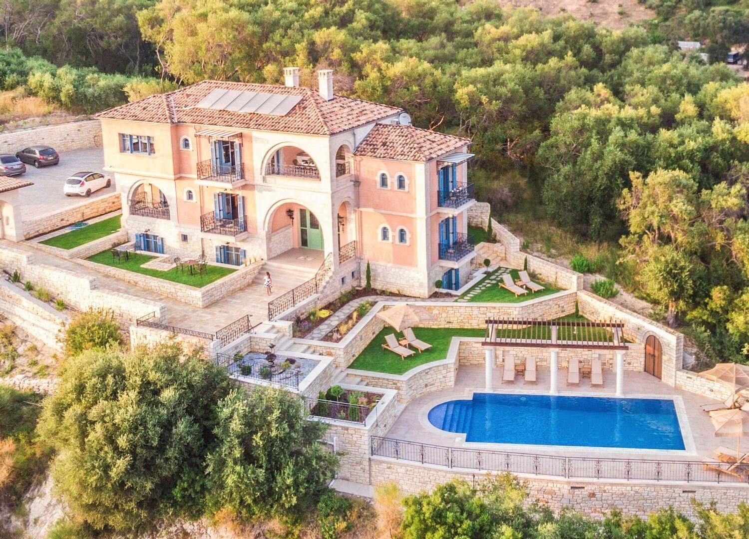 ELYSIUM is located in an elevated position just above the dreamy Parga in northwestern Greece. With stunning views of the city of Parga, the picturesque island opposite the port, the castle and the sandy beaches, this villa enjoys an idyllic holiday environment. A mixture of bright and earthy colors, with carved wooden furniture, stone, and traditional tiles give this villa a fresh but relaxed and classic feel.