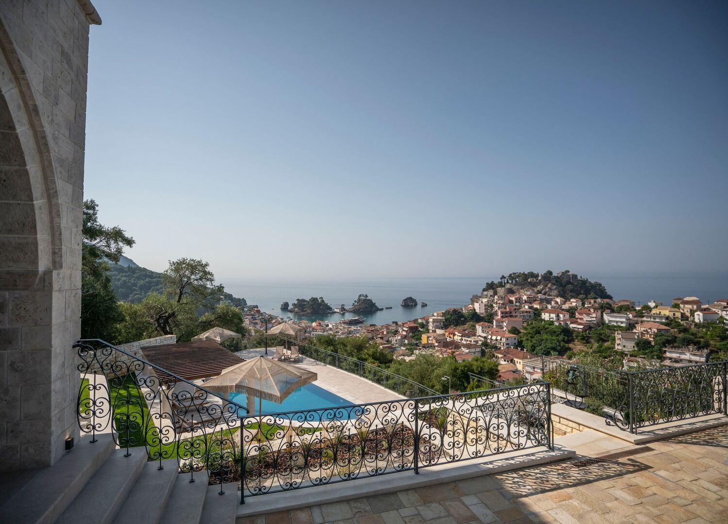 Elysium Living Parga is a beautiful villa located above the picturesque town of Parga in northwestern Greece. The villa offers stunning views of the city, the island opposite the port, the castle, and the sandy beaches. With 7 studios and a Grand Suite, Elysium provides comfortable interiors and a dream pool with sunbeds. Guests can enjoy breathtaking sunsets and the charming town of Parga with its colorful houses, local taverns, and beautiful beaches. The villa is the perfect place for a romantic proposal or a dreamy wedding ceremony.