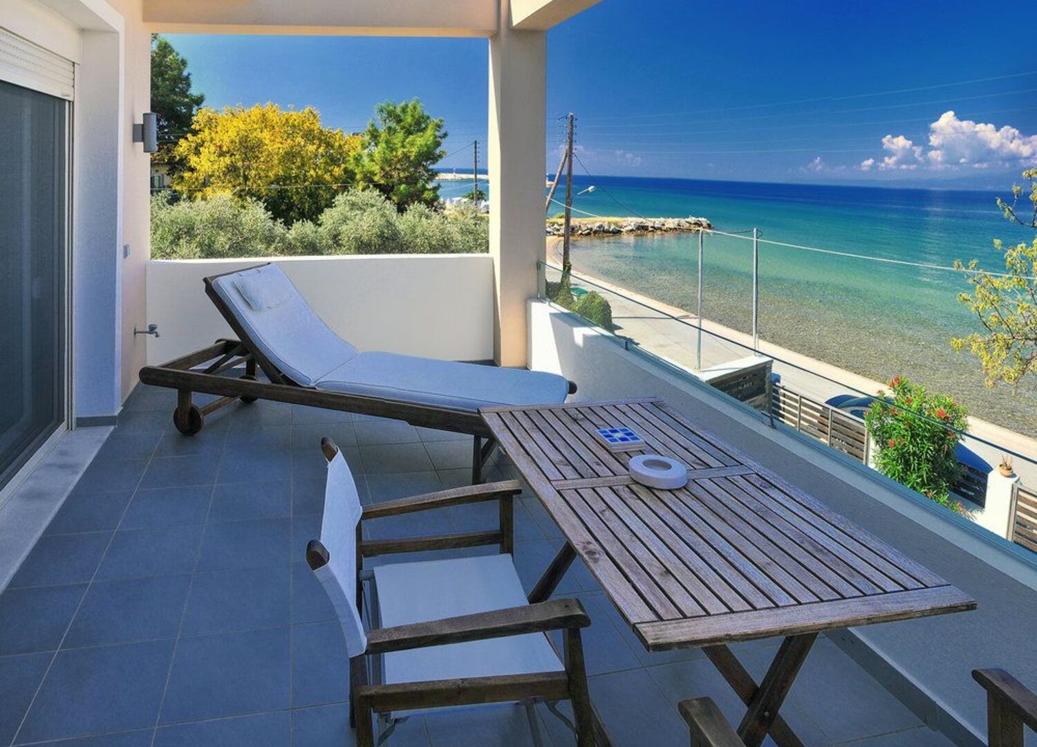 The modern and airy style of the suites and their minimalist aesthetic creates a relaxing environment for a unique stay experience. Modern design and chic furnishings come together in bright rooms with balconies or terraces that provide panoramic sea views to the Toroneos Gulf.