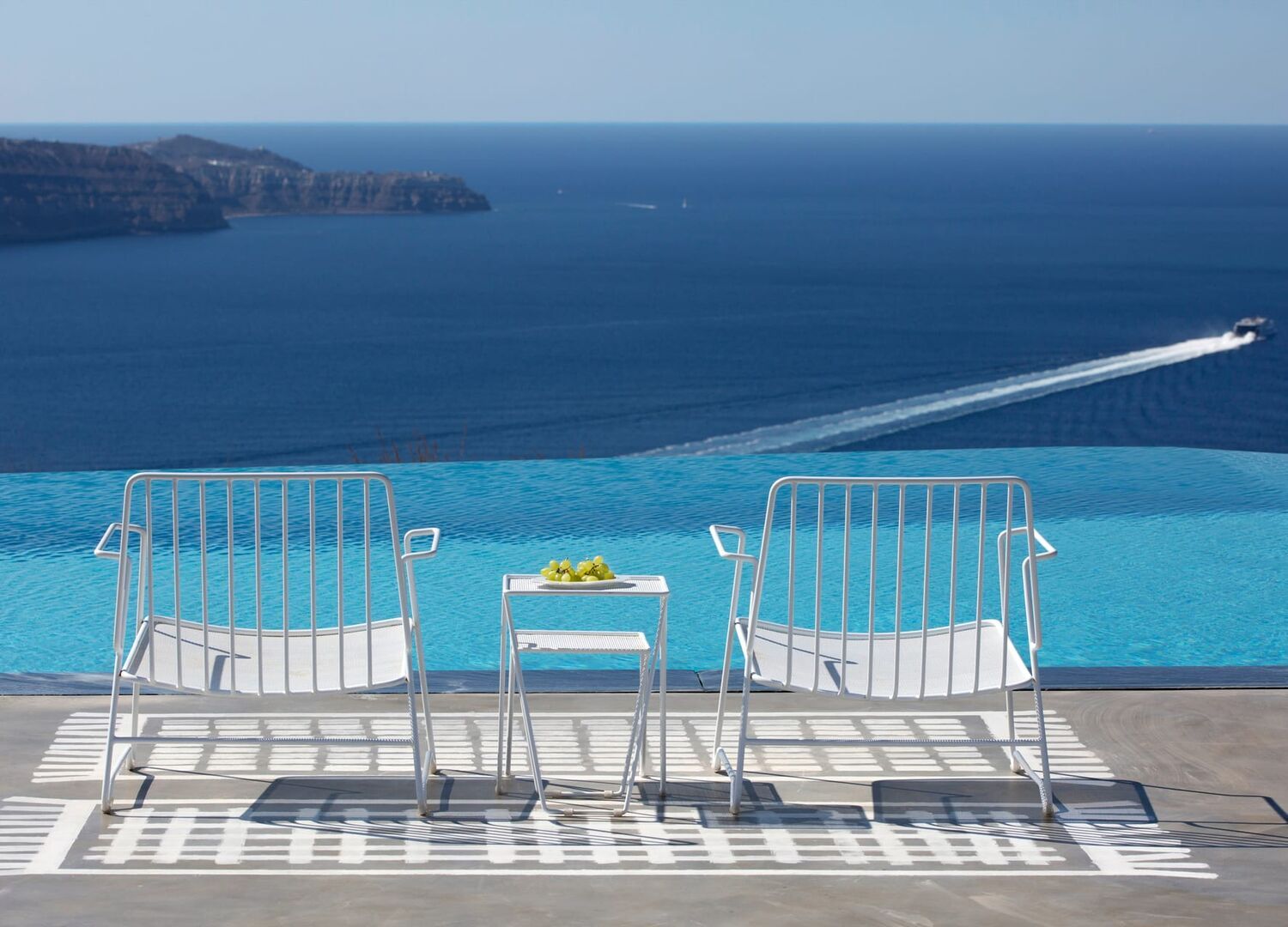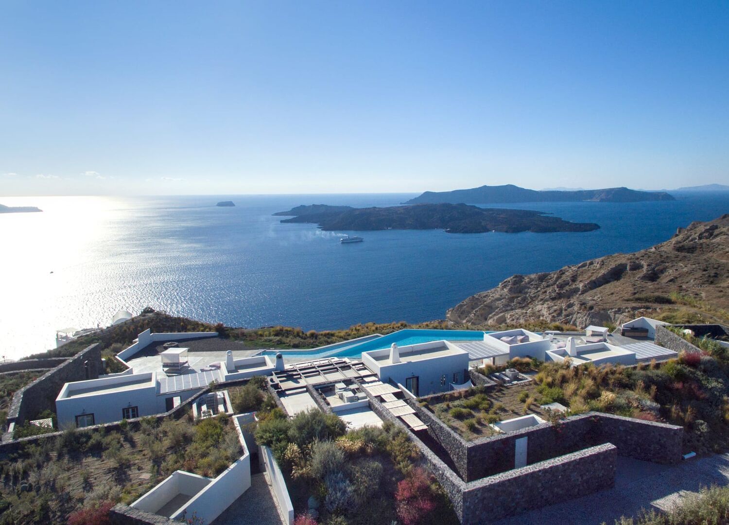 The island’s first truly private, exclusive-use resort Estate meticulously designed for year- round enjoyment. Reflecting a new concept of hospitality represented by the quintessentially Greek philosophy of “philotimo,” the property’s resident host is on hand to make guests’ every desire a reality. The Estate’s chef designs menus each day around guests’ personal tastes and cravings, showcasing the finest offerings of the region. Tucked away on a cliff 1,000 feet above the Aegean, this utterly unique property offers the most breath-taking views on the planet, capturing Santorini’s iconic whitewashed villages, epic sunsets, and vibrant land and seascapes.