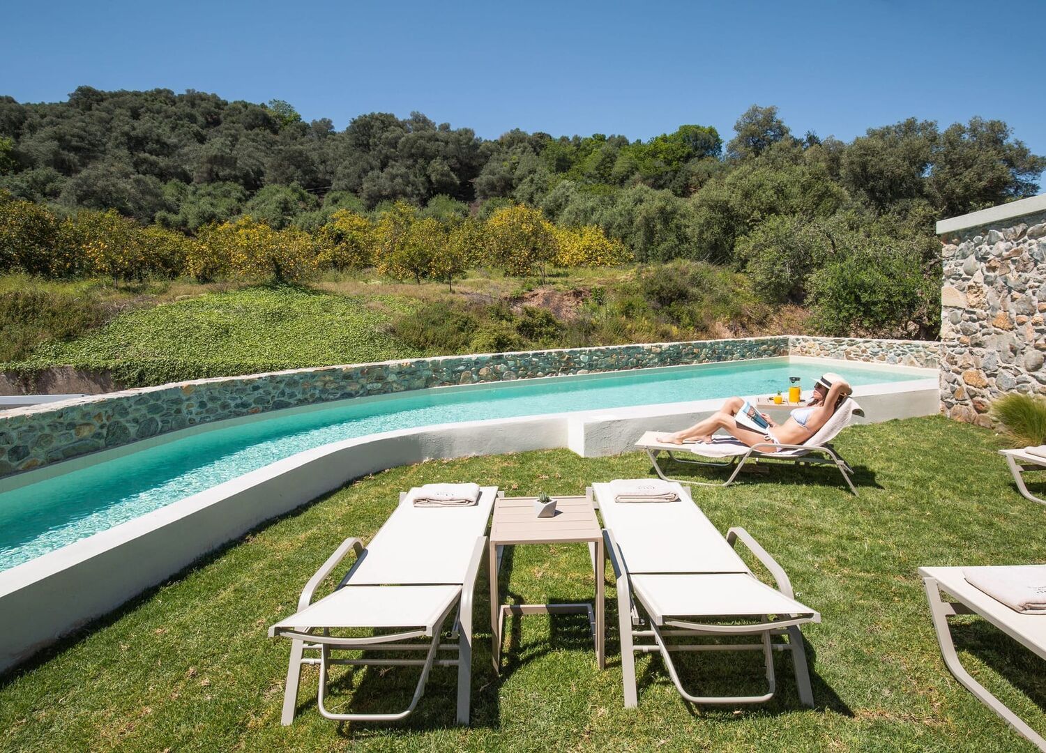 Our boutique 3* hotel is located at the Nio Chorio of Voukolies village and at a small high neighborhood with the name "Lakkoi", in the center of the regional unit of Chania at Platanias Municipality and, simultaneously, right in the heart of nature. A village on the top of incredible hills with a view up to the Cretan Sea but at the same time filled with lush greenery, in close proximity to paths of unparalleled beauty, groves that make fantastic day trips, and awarded beaches with magnificent azure water. Fields of numerous orange and lemon trees, as much as an abundance of olive trees and the deep blue sky are also parts of a landscape that changes colors along with the seasons. Evge’s location makes it an ideal destination for the ultimate relaxation experience, during any season of the year, since its sustainability will make you feel in balance with the real Cretan nature.