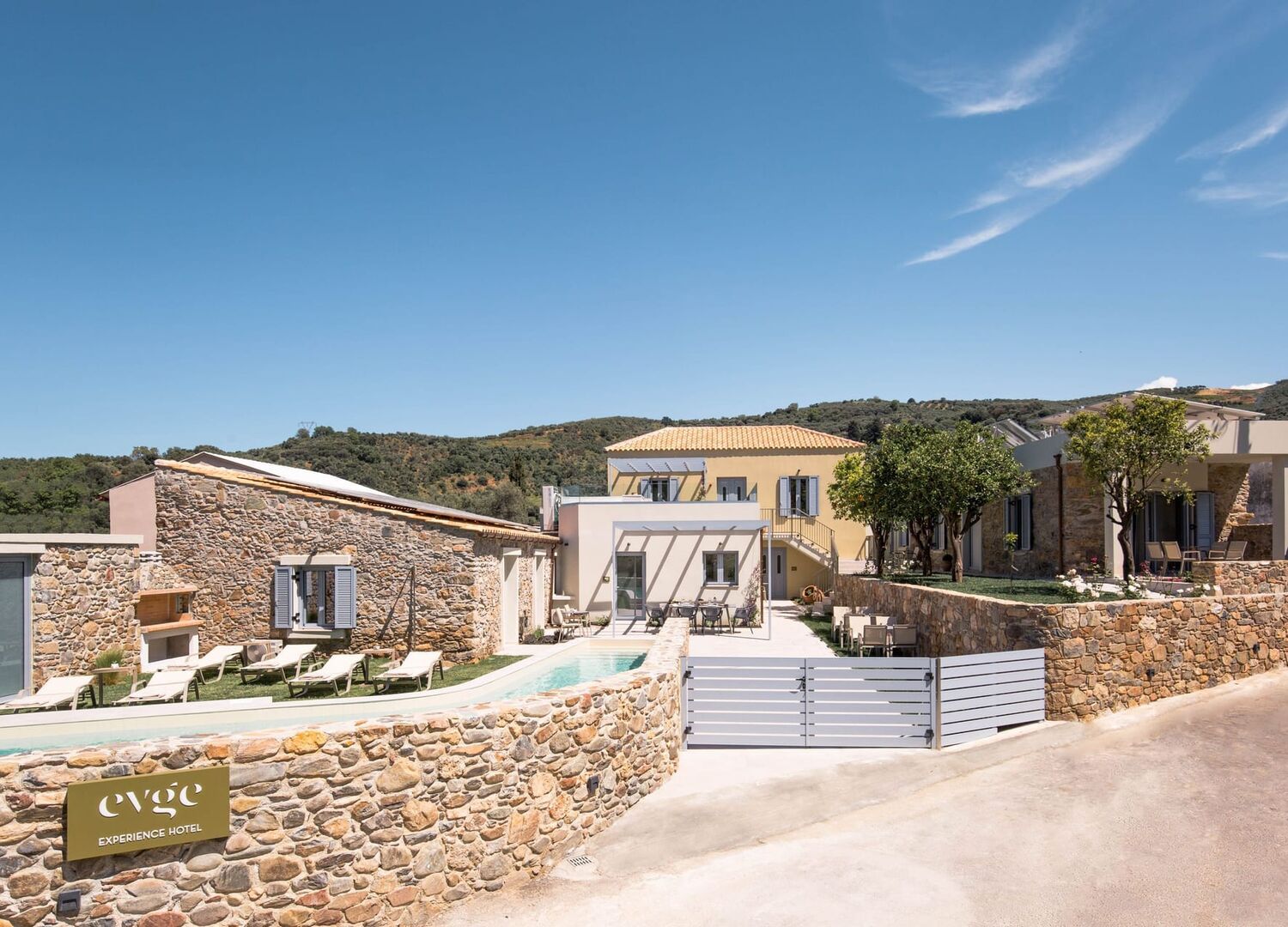 EVGE Experience Hotel is a boutique 3* hotel located in the Nio Chorio of Voukolies village, in the center of the regional unit of Chania at Platanias Municipality. Situated in a small high neighborhood with the name "Lakkoi", the hotel offers stunning views of the Cretan Sea and lush greenery. Surrounded by paths of unparalleled beauty, groves, and award-winning beaches, EVGE Experience Hotel is the perfect destination for relaxation and experiencing the real Cretan nature. With a focus on sustainability, guests can enjoy a peaceful stay in harmony with the natural surroundings.