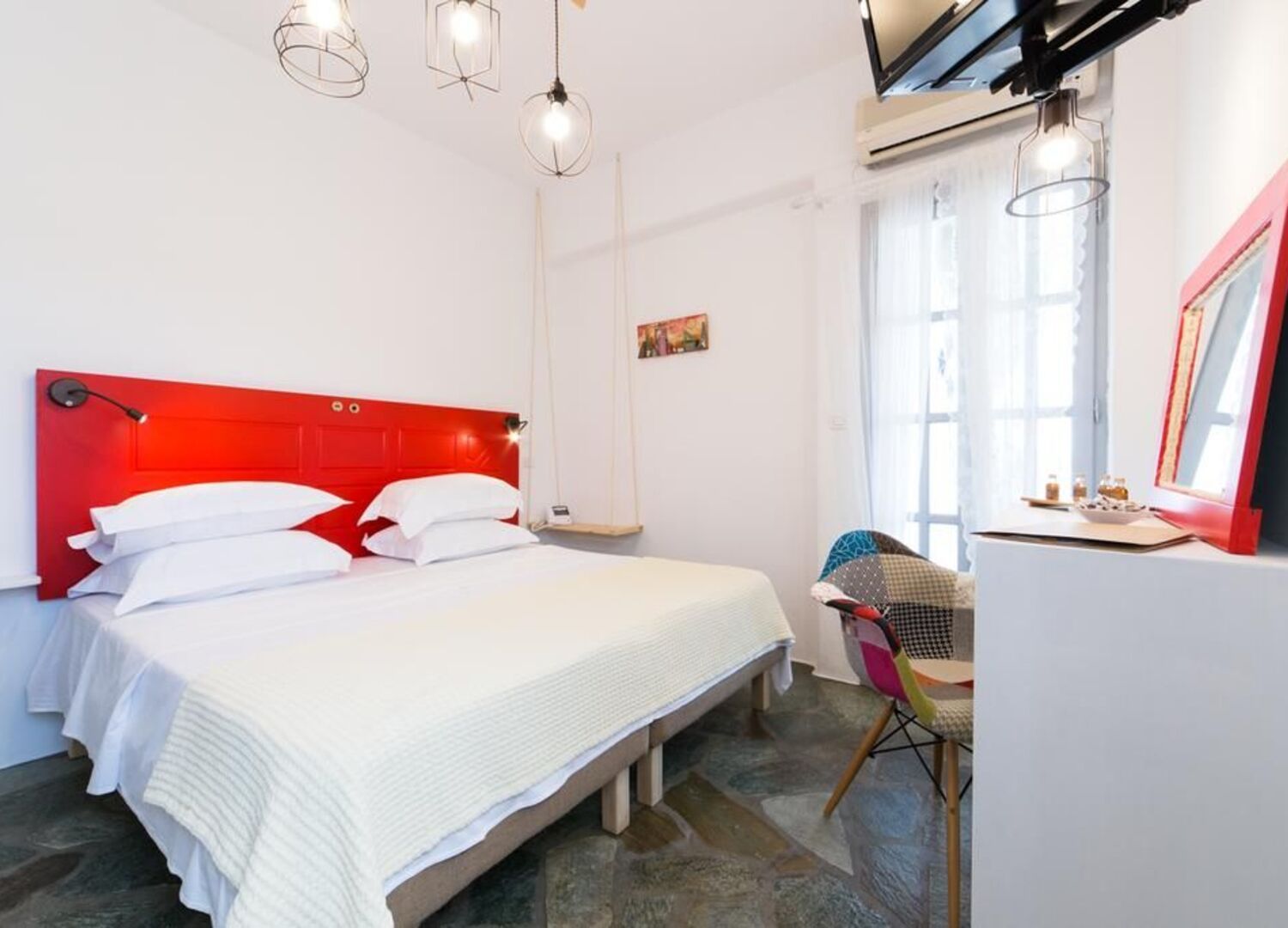 Evi Rooms is a unique boutique accommodation in Paros that combines comfort and a warm ambience with simplicity and true relaxation especially for families as our hotel provides a swimming pool for kids and playground. Both services are provided by our sister 4-star hotel, Parosland Hotel, just 50 meters from Evi Rooms.