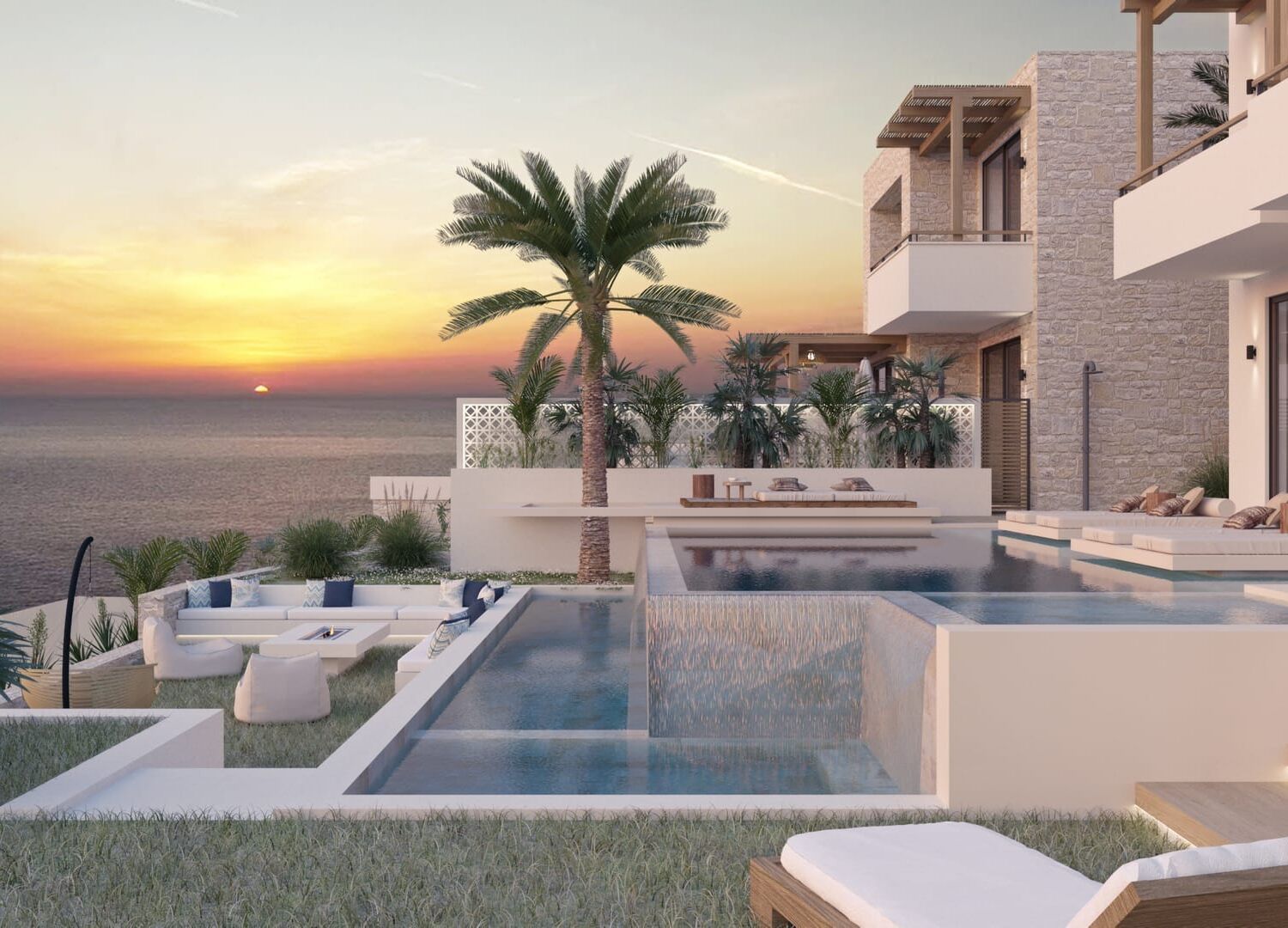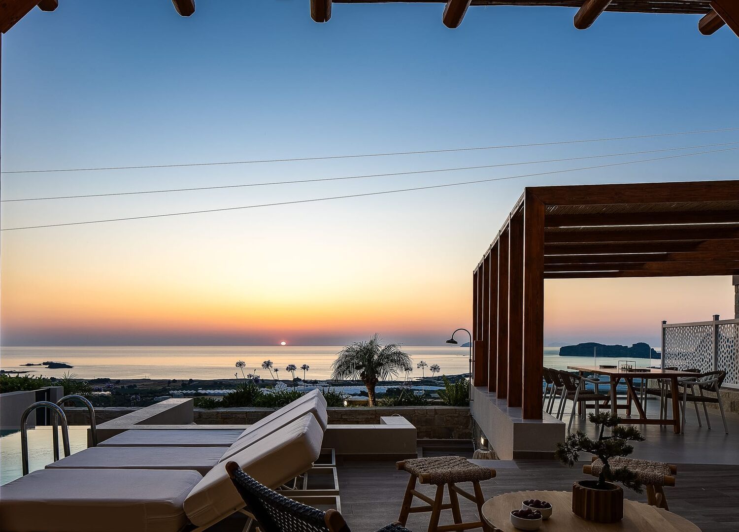 Falasarna Luxury Villas in Chania, Crete offers modern and traditional architecture inspired by the sea, with stunning views of the Falassarna beach. Perfect for families or friends looking for a relaxing and quality holiday close to beautiful beaches like Falassarna, Balos, and Elafonissi. Enjoy the crystal clear waters and golden sands of the Blue Flag beach just meters away. Welcome to an idyllic retreat where the sky meets the sea in majestic colors.