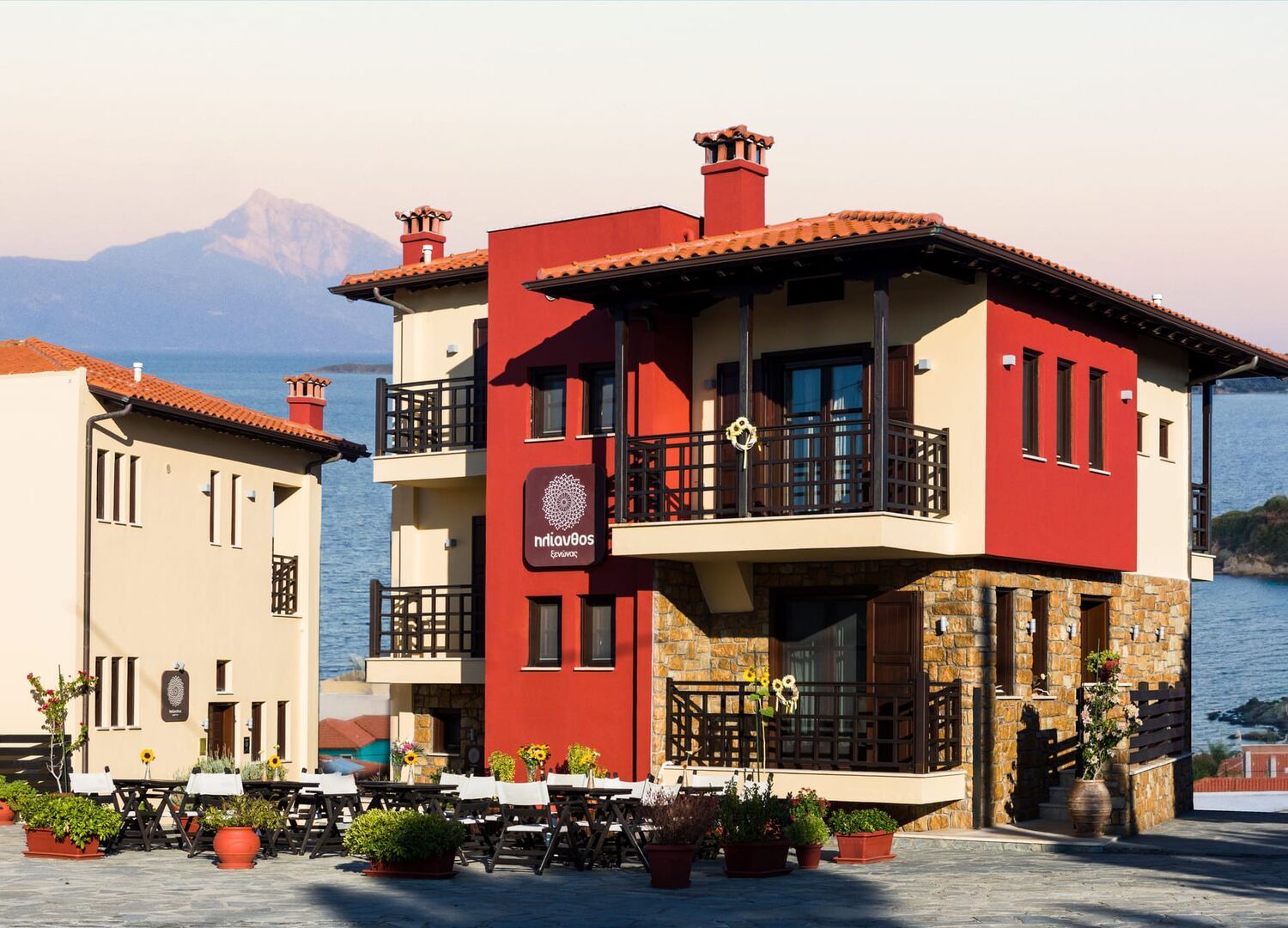 Helianthus Guesthouse in Ammouliani, Chalkidiki offers a tranquil and beautiful atmosphere for those seeking moments of relaxation. The guesthouse features nine rooms decorated with Greek flowers, combining comfort and simplicity. With a focus on natural materials and ecological sleep systems, guests can enjoy a luxurious experience with a unique style. The guesthouse is located in Ammouliani's Square, offering a peaceful retreat for visitors.