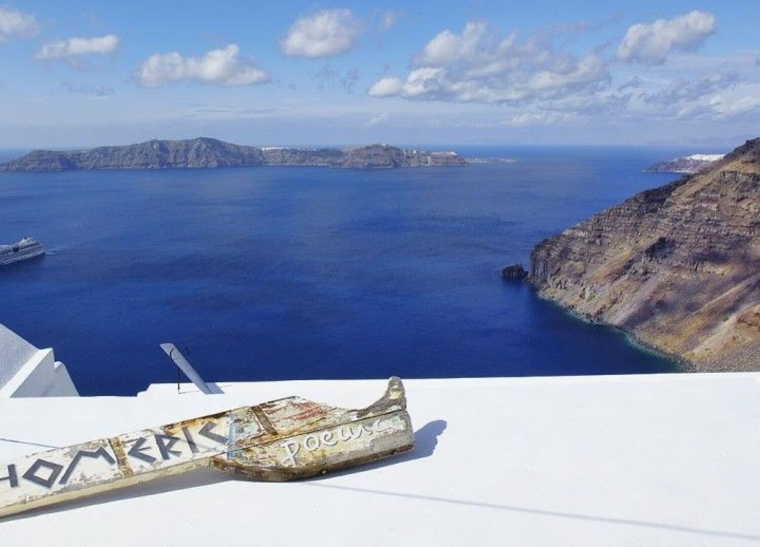 Location: The Homeric Poems hotel is located in the village of Firostefani. Just a 10 minutes walk from the town of Fira and 20 minutes by car from the airport and the port of Santorini. If you arrive with your car, look for the church of Agios Gerasimos and after parking in the nearby parking area take the road of the caldera (left of the church) and continue until you find the boat resting at the top of the Homeric Poems.