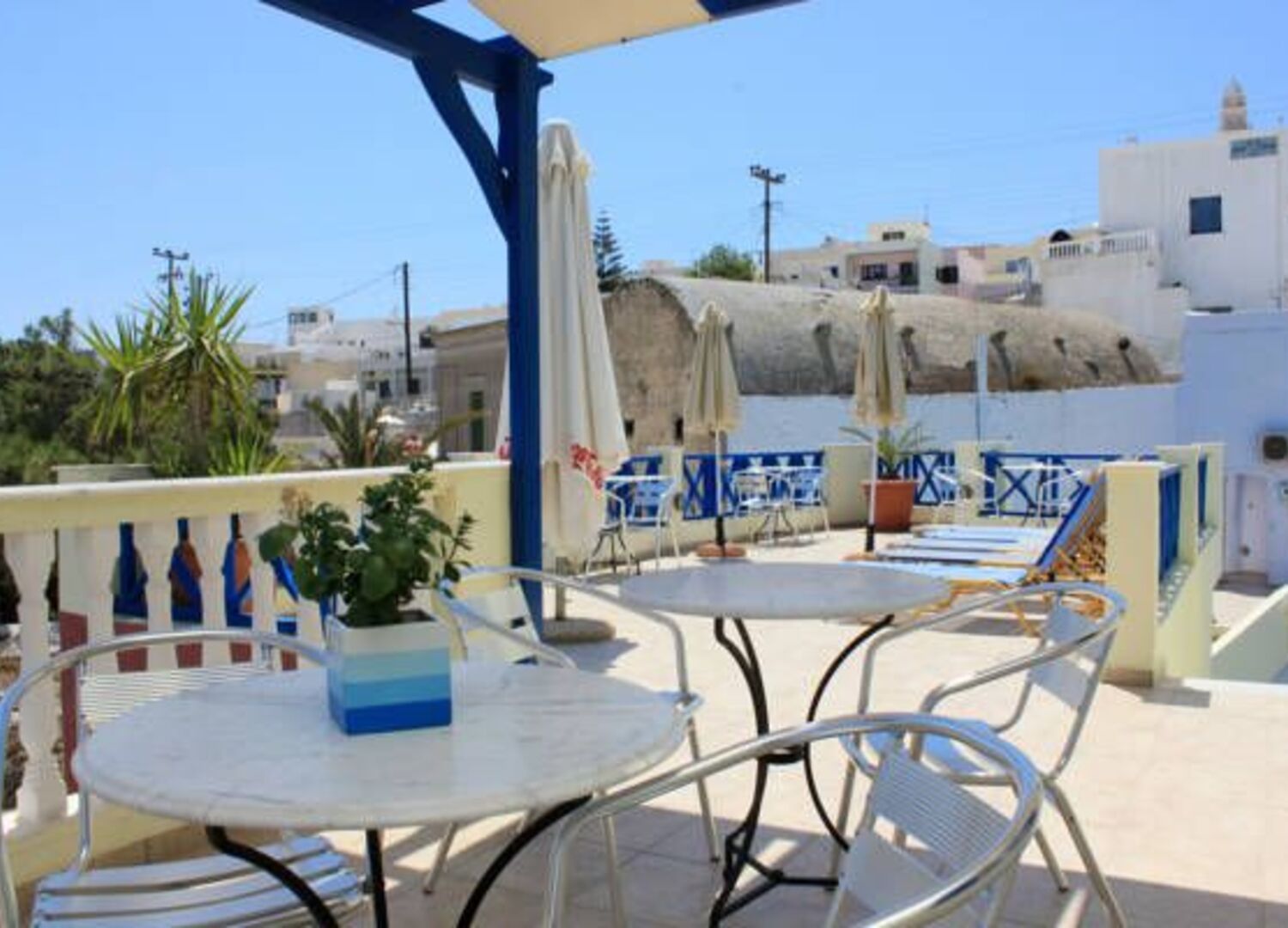 Hotel Leta provides a terrace overlooking the east coast of the island and the deep blue Aegean Sea.