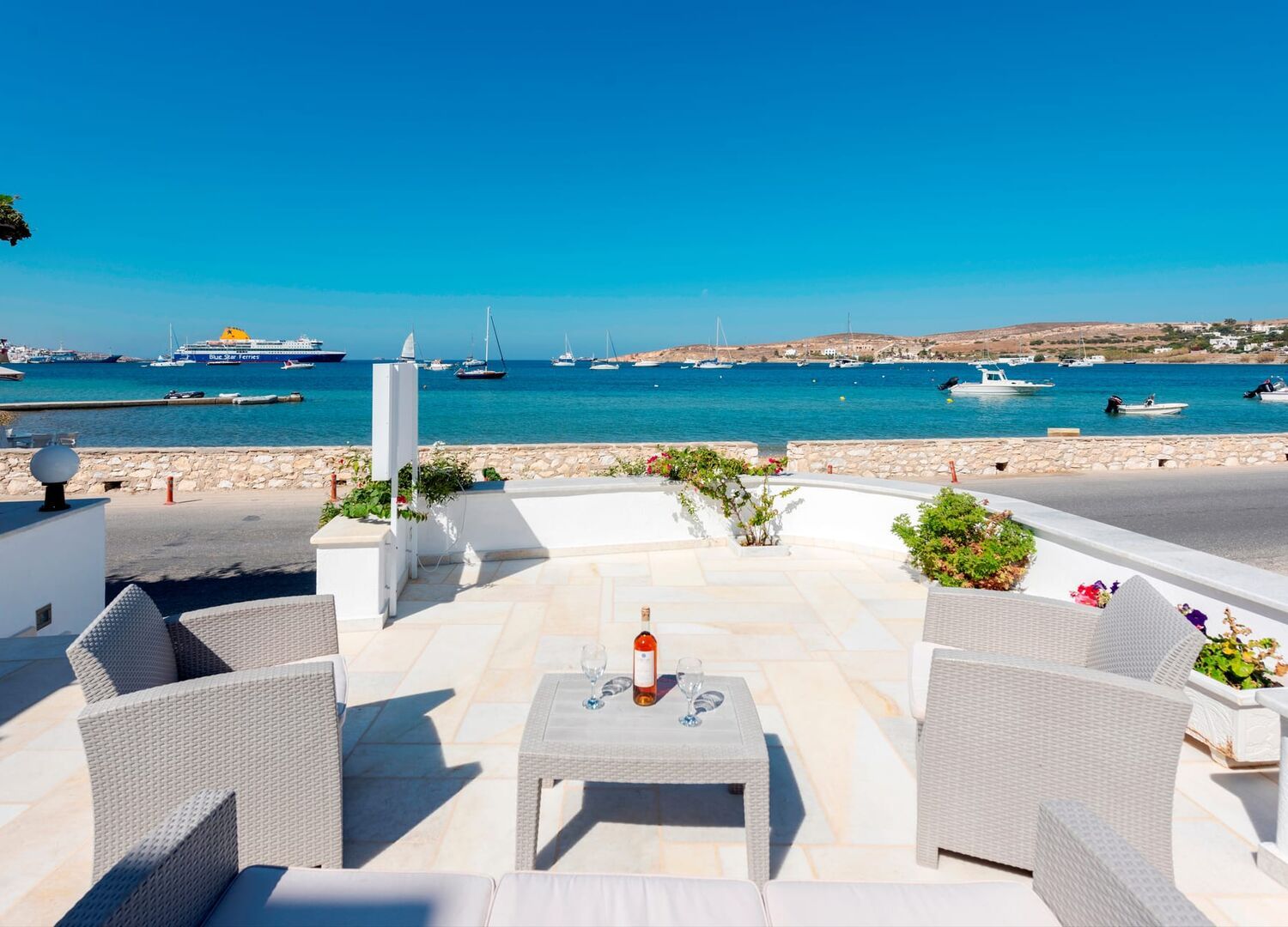 Our prime location puts you close to the bustling port and a variety of charming cafes, tavernas, mini markets, and restaurants for you to explore at your leisure. Plus, for added convenience, we offer car rental services to help you discover the island's treasures with ease.