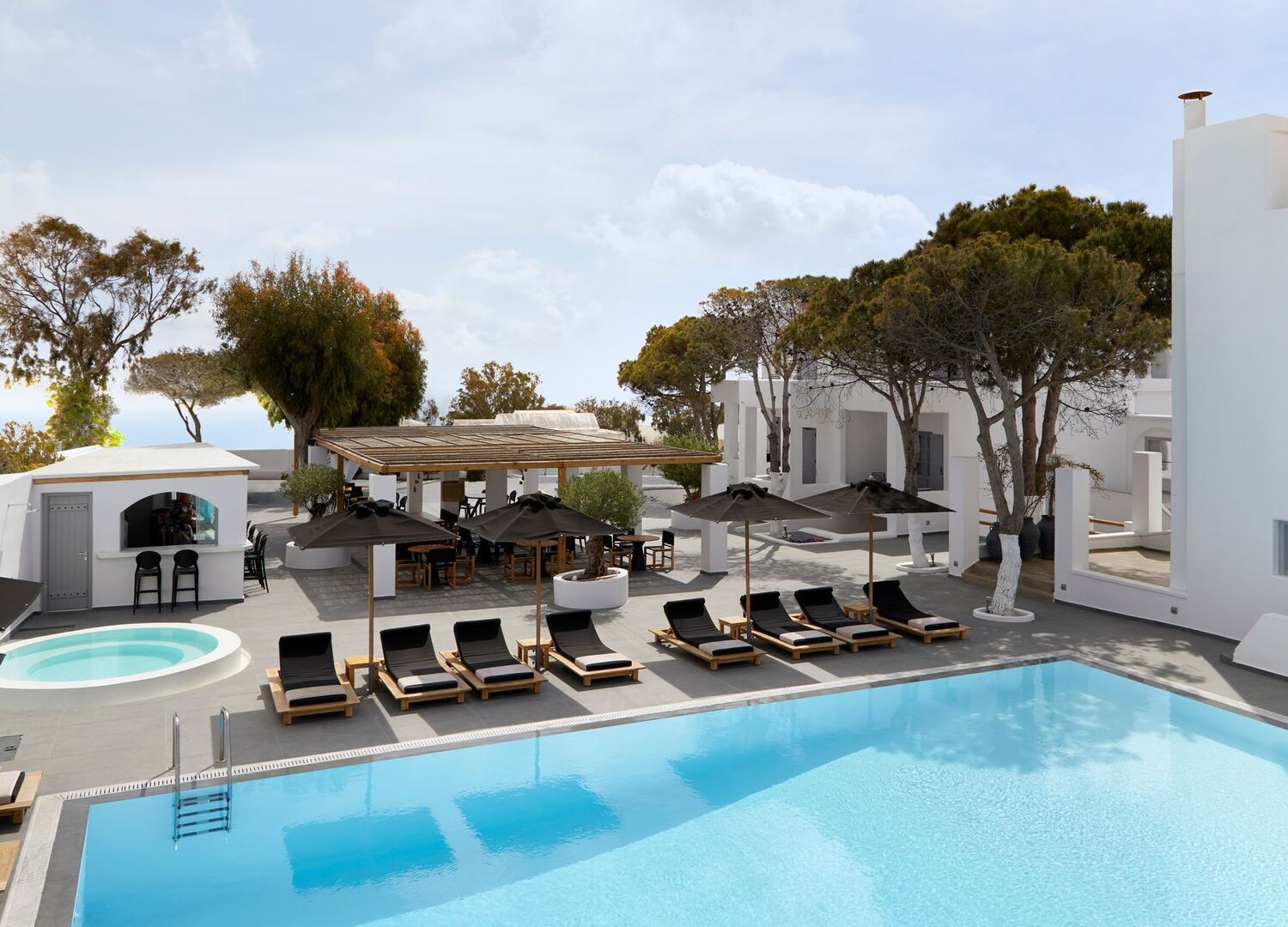 The Hotel is 6 km from Santorini airport and Athinios port, 3 km away is the nearest beach 'Exo Gialos' and the famous black sandy beach is only 15 minutes away.