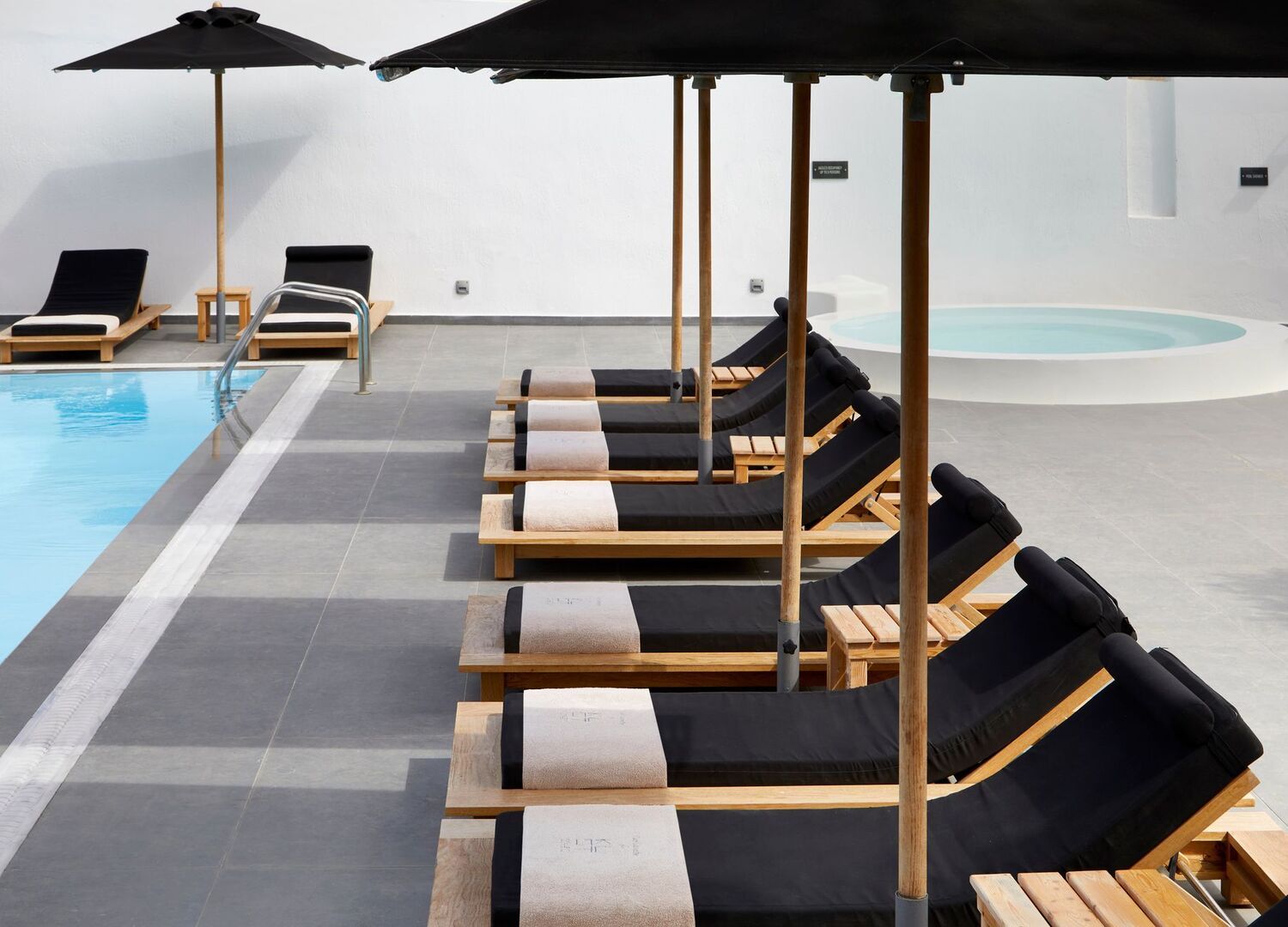 The modern hotel offers two pools with a sun-lounger terrace and an outdoor hot tub.