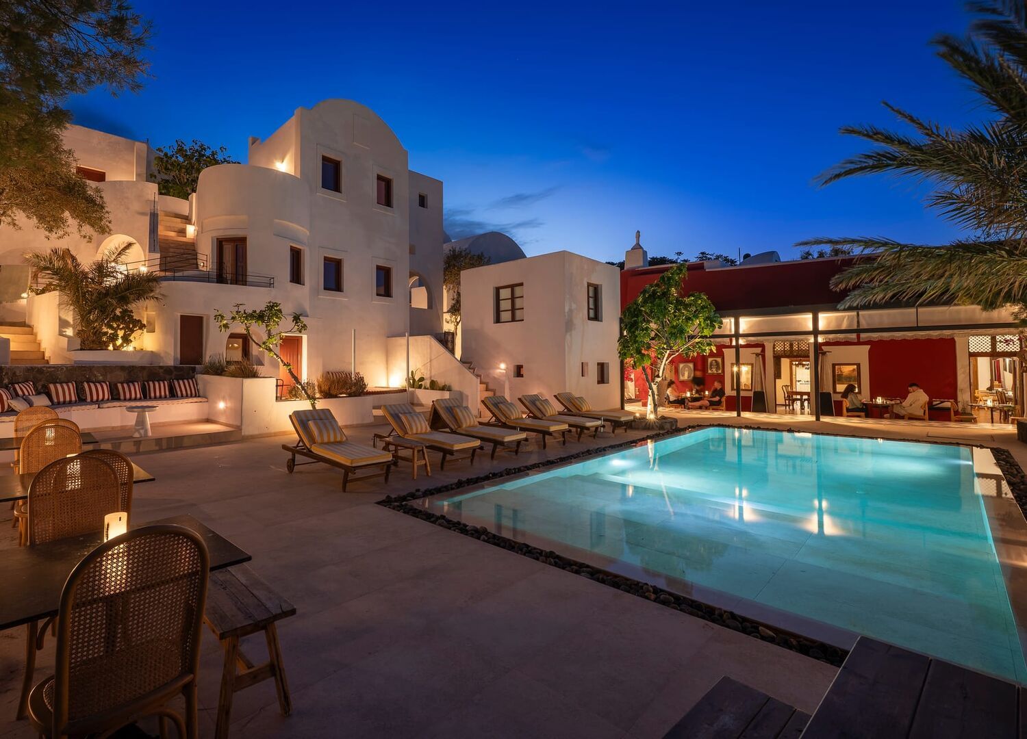 Meroviglia Boutique Hotel surrounds a beautiful 19th century mansion located in Imerovigli, a settlement where the volcanic nature, the sparkling blue of the Aegean and the rich cultural heritage of Santorini, all blend in a narrative of quiet elegance and warm hospitality. A historical mansion, built 200 years ago with eclectic features, is the legacy of the Venetian rule era we were inspired to revive. Our vision stands as the soulful tribute to Santorini’s Italian influences, through Art, Gastronomy and Mediterranean aesthetics. Make yourself at home and let us take you along on our journey of the authentic Santorini we love.