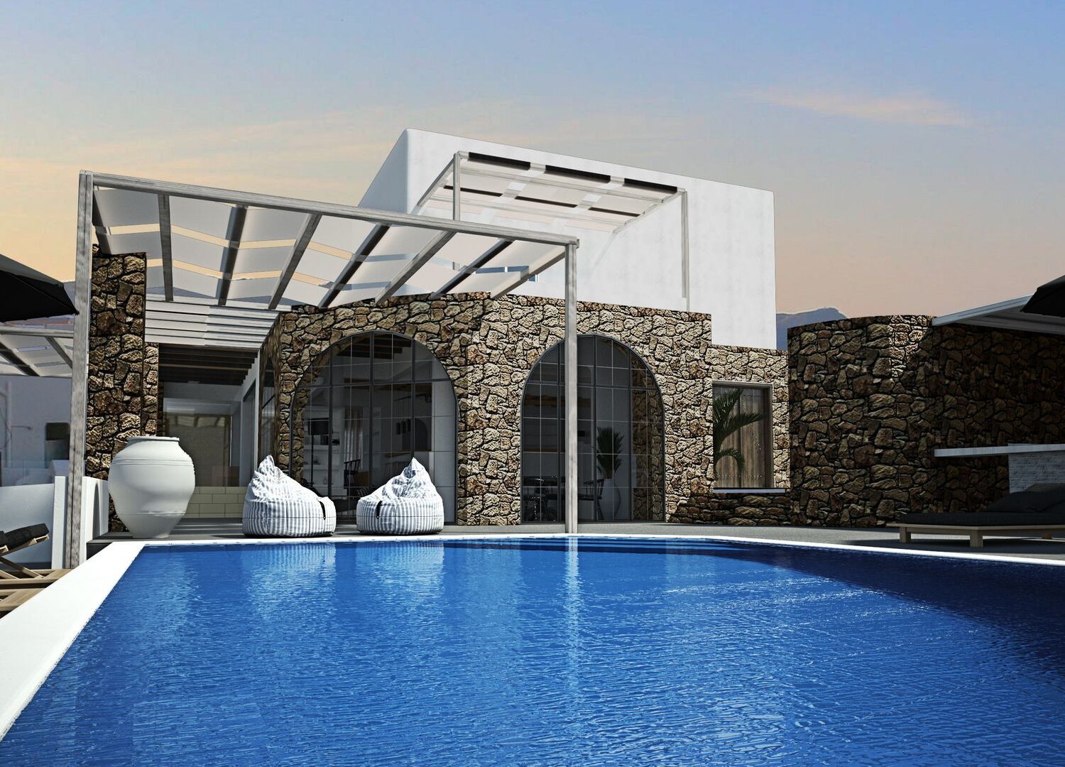 The hotel is built only 2km from the vivid town of Mykonos and 3km from Mykonos International Airport (JMK). The village of Platis Yalos offers various choices of restaurant, taverns, café bars and shops. The famous beaches of Psarrou and Ornos can be easily reached within a range of 2km.