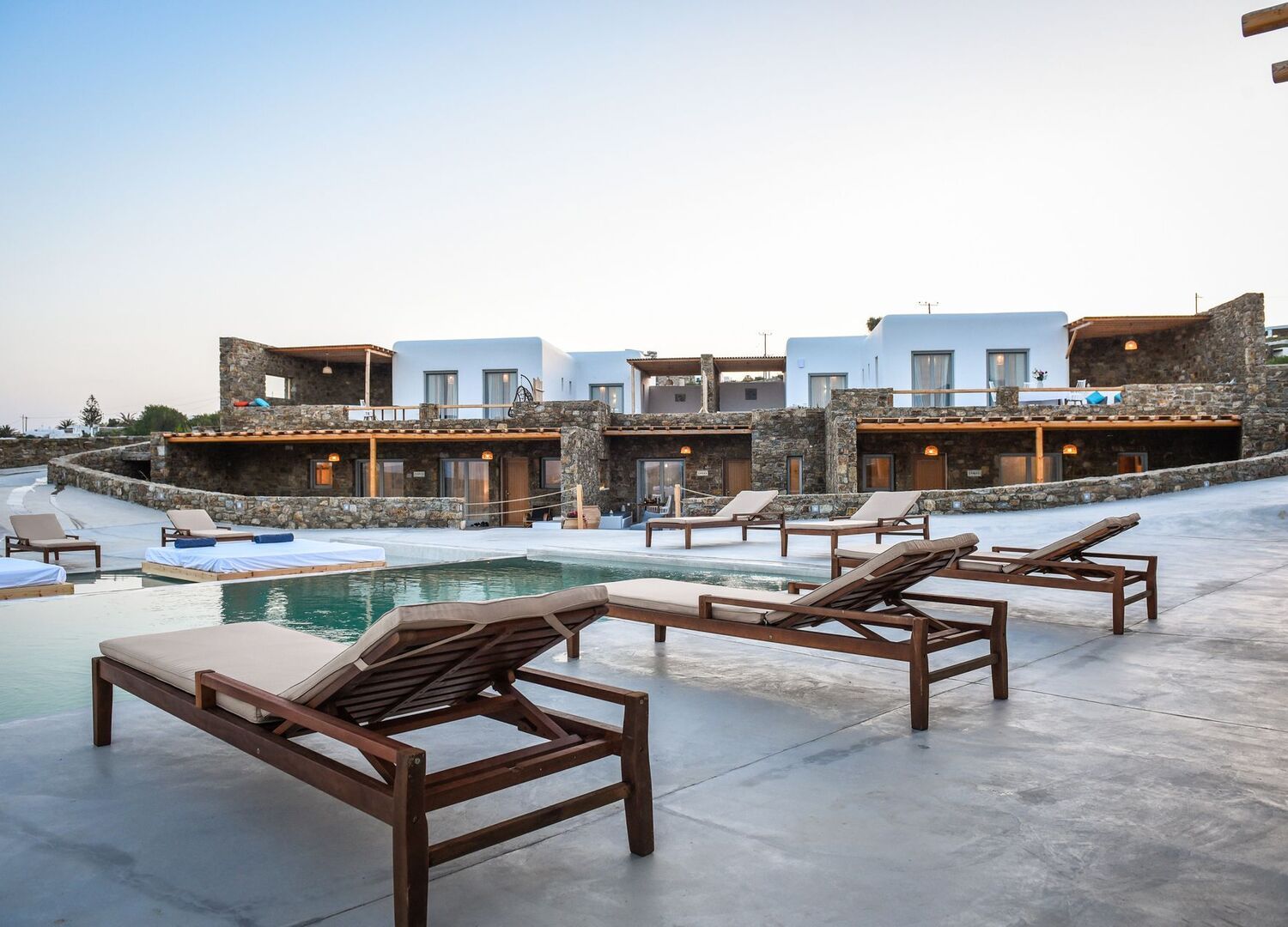 In Mykonos, the most beautiful island of the Aegean, the island of VIP'S, where the summer holidays, the sun and the sea are accompanied by the nights of ''PARTIES'' overnight and endless fun, we created a complex of 7 luxurius and independent Suites next to the famous beaches Kalafati and Kalo Livadi.