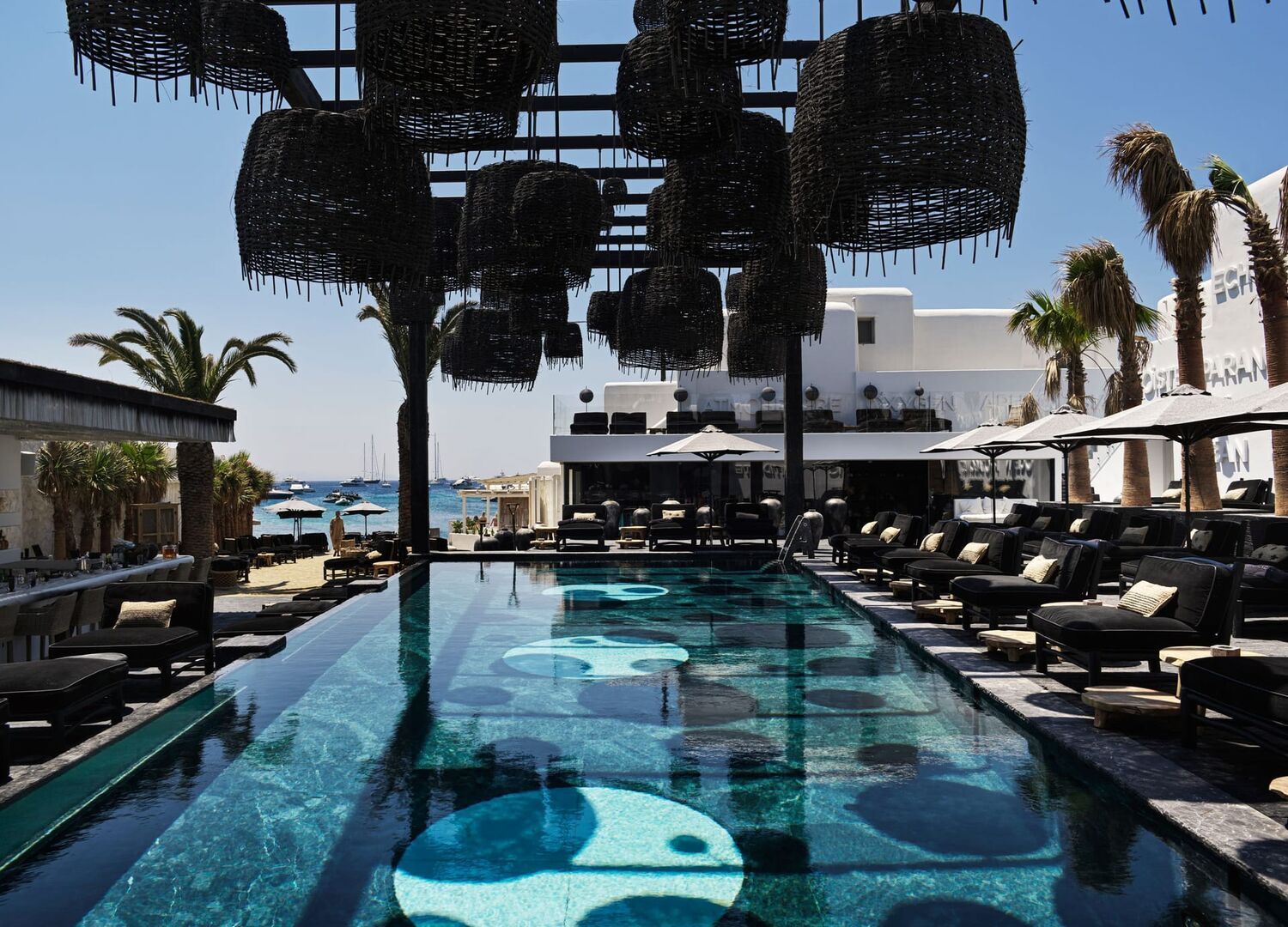 O is at the heart of it all. With its toes in the fine sand of Ornos bay, famously close to Mykonos town. Sheltered from all but a gentle breeze on the ‘island of winds’. Steps away from some of the best waterfront bars, restaurants and a quaint line-up of convenience stores and water-sports concessions.