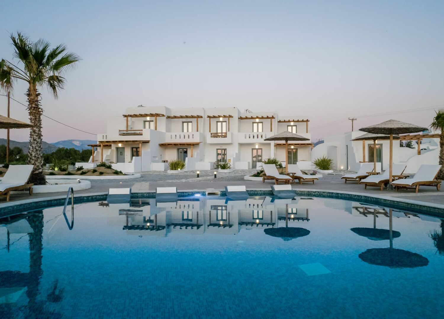 Designed in modern Cycladic architecture with a beautiful pool, poolside snack bar and private parking, the hotel provides optimum comfort, aesthetics, and elegance in every detail.