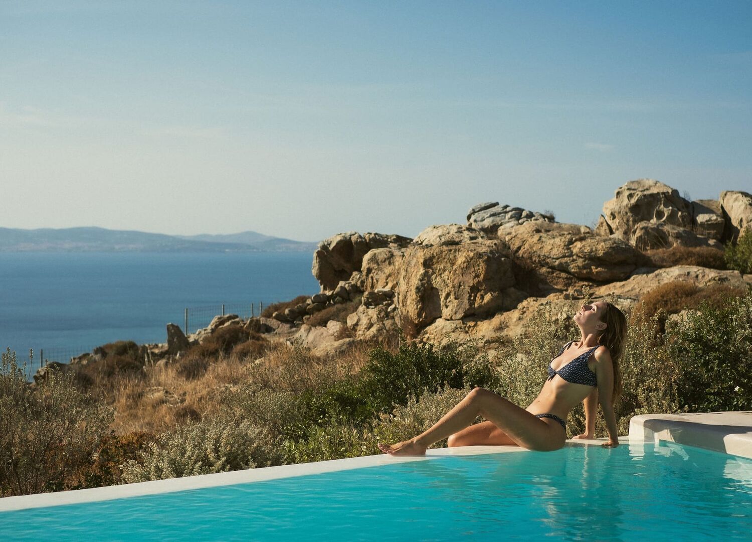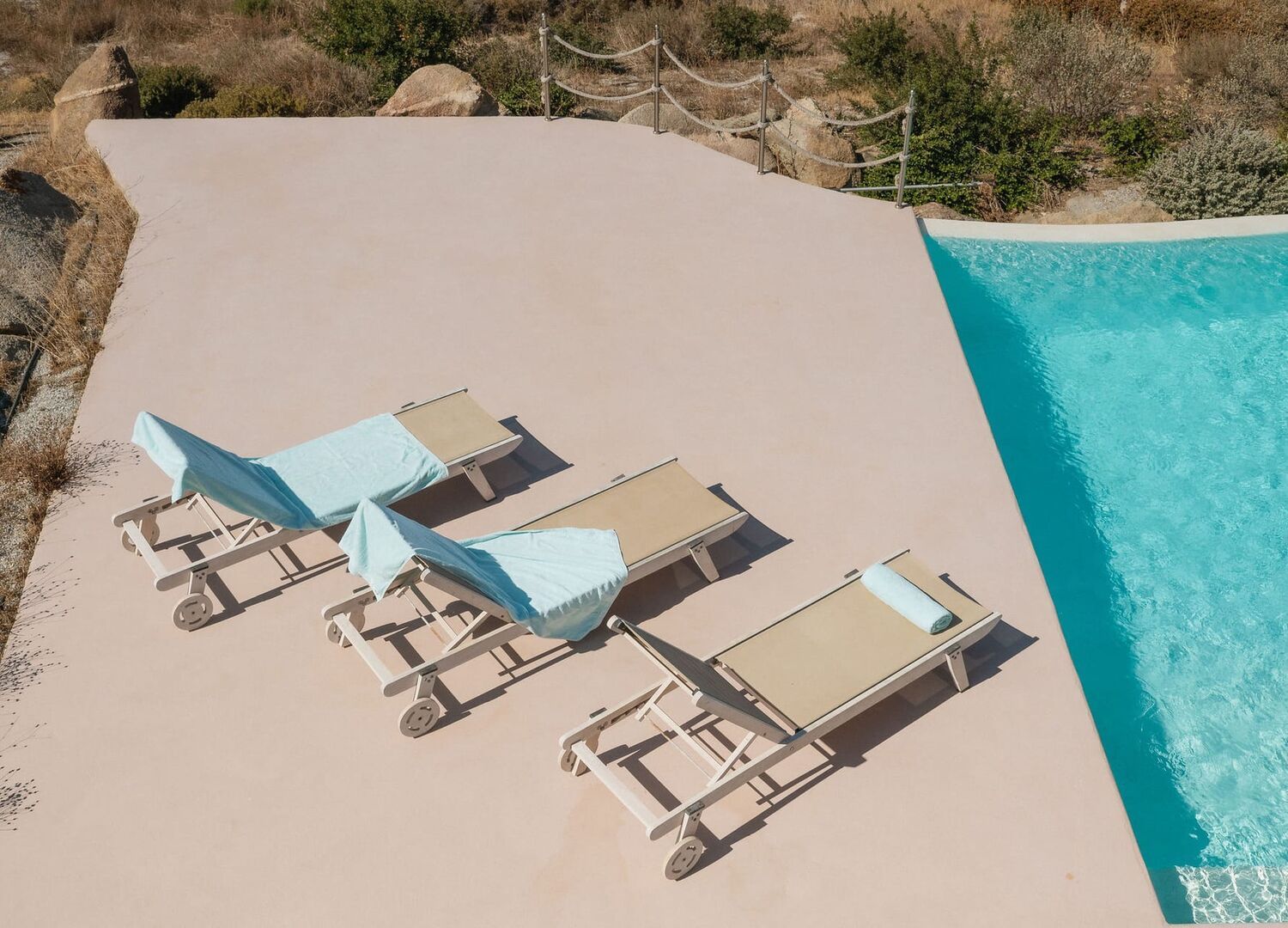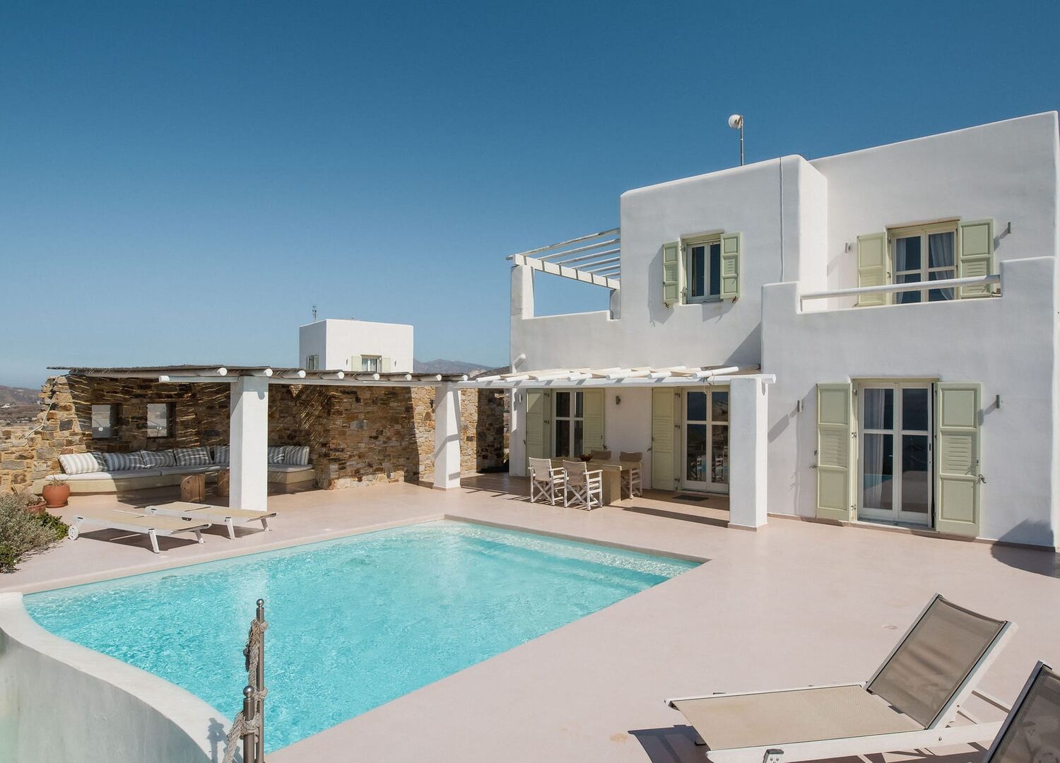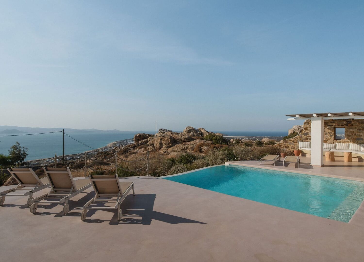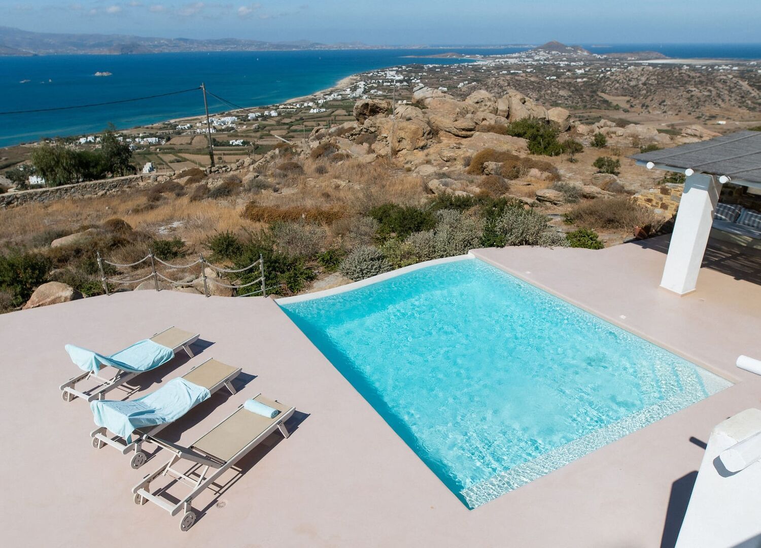 Naxos Grande Vista Villas are located on the hill of Agia Paraskevi at Plaka beach of Naxos Island. Luxurious amenities and breathtaking views are elements that will get you into the swing of your holidays. The majesty of absolute luxury. The panorama of the most beautiful sea in the world. A precious jewel, built on the hill over Orkos beach, ideal for you and your friends or family that look for a perfect stay and demand an experience of top standards. Spacious bedrooms, jacuzzi, delightful living rooms, modern and fully equipped kitchens, verandas with panoramic view, private swimming pools and outdoor facilities. All to be lived and to be enjoyed at Naxos Grande Vista Villas. The 3 stand-alone villas sit on 2 acres of land. Each villa has a private swimming pool and a full kitchen and living room. Naxos offers spectacular sandy beaches and also opportunities for hiking, summer sports and much more.