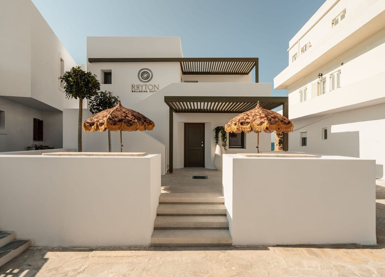 Naxos Rhyton is a luxurious hotel located in the heart of Naxos, offering four ultra-luxurious suites with stunning sea views. This adults-only hotel features private terraces with jacuzzis, direct access to the beach, and open parking. Guests can enjoy the beautiful Aegean Sea and the temple of Apollo from the comfort of their suites.