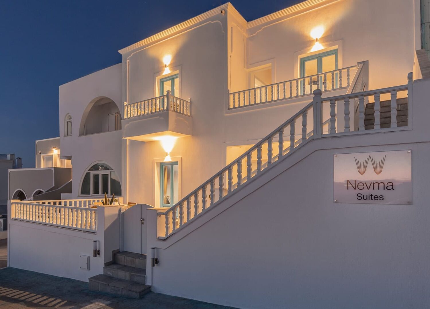 Nevma Suites is a boutique complex in Firostefani, Santorini, offering spacious rooms, cave style suites, and a private sunset and Caldera view experience. Owned by a family that values authentic Greek hospitality, Nevma is just a short distance from Fira, the cultural and commercial center of Santorini. Experience the serenity and warmth of Santorini at Nevma Suites. Address: Santorini - Firostefani.