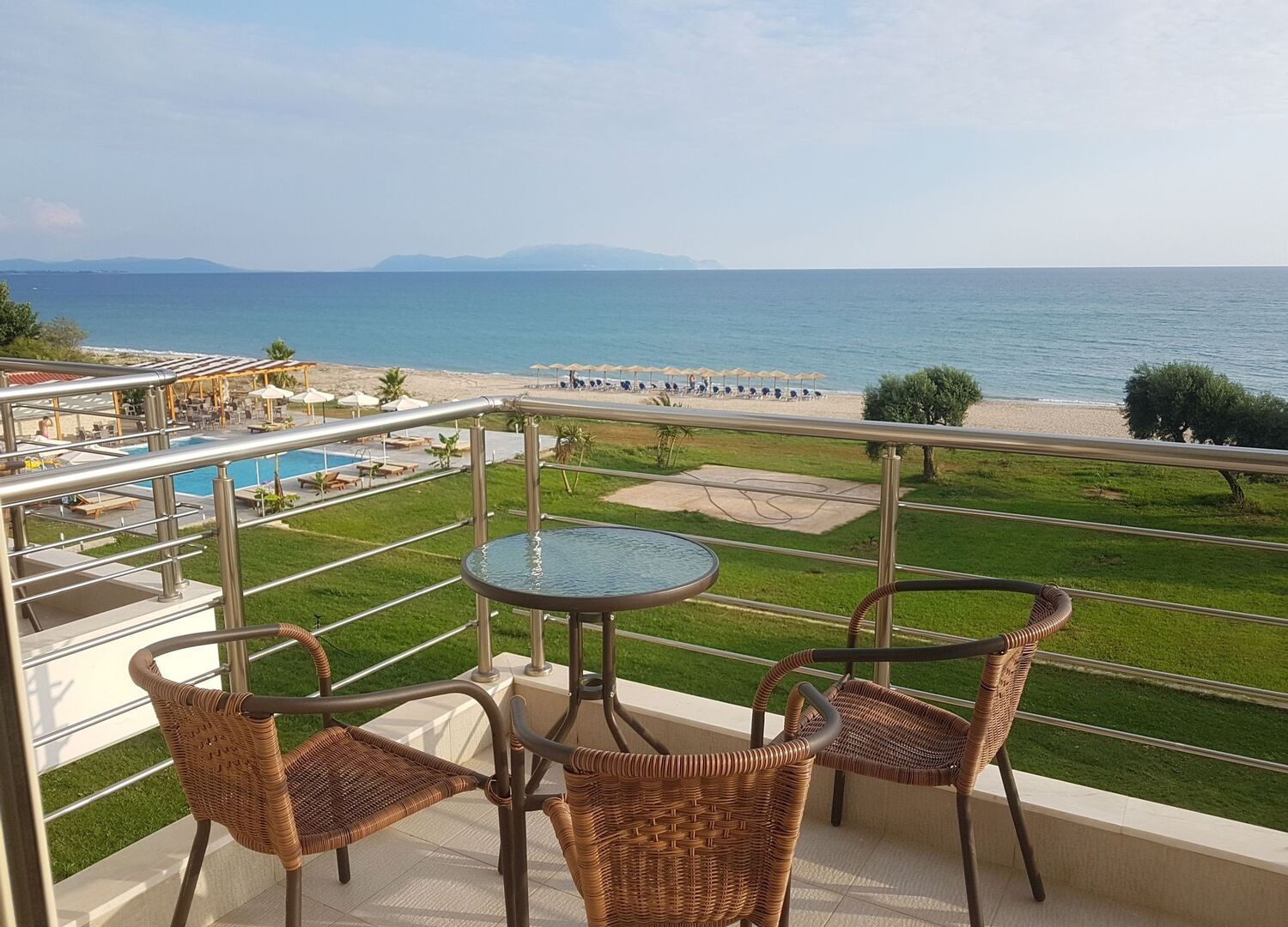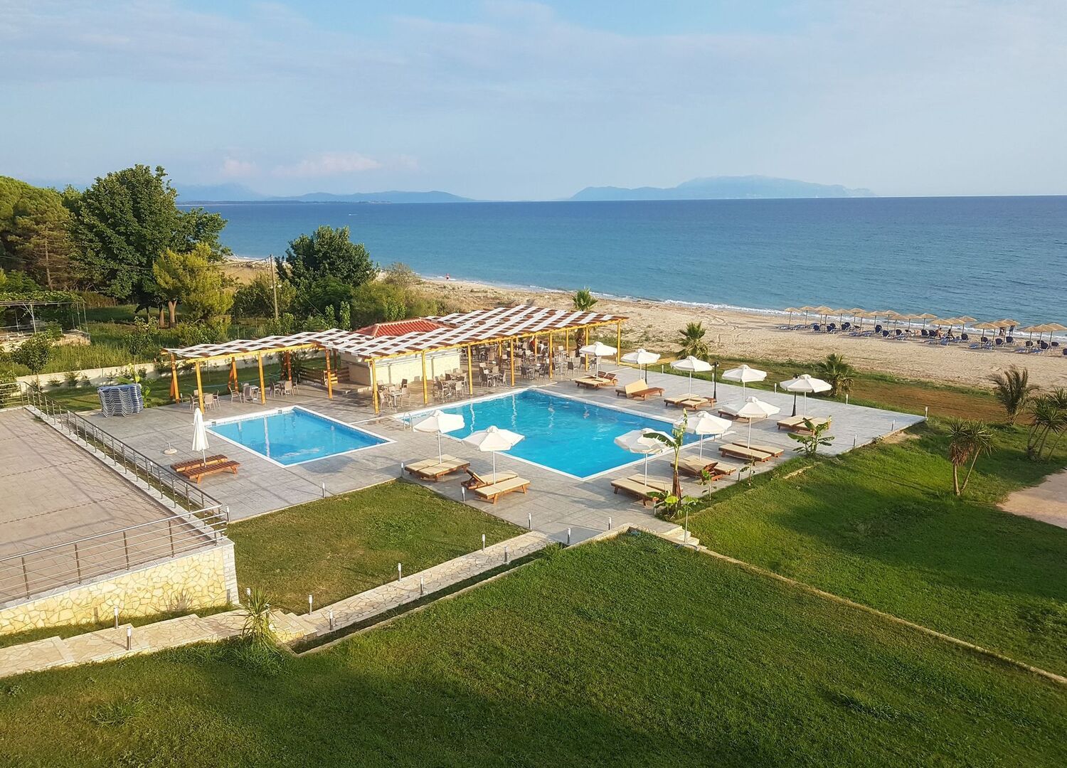 If you are looking for a beachfront hotel on a budget away from the hustle and bustle of resorts full of English tourists for some relaxation and sun bathing/ sea swimming and maybe take in some sights nearby with a hire car this place is ideal for you. But be under no illusions here. This place is 25 minutes away from the nearest international resort town by car. It is quiet and there are only a couple of local taverna's nearby within walking vicinity that are geared up more for Greek holiday makers than foreigners. The hotel only has 20 rooms on 2 floors but all rooms have sea views that look across to the Greek Island of Lefkada. The rooms aren't equipped with kettles, room safes or hair dryers but will be supplied on request. There is a nice walk in shower in the bathroom that does take a little while for the water to get hot but it does after a couple of minutes. Breakfast is a rather basic affair. Coffee, water and orange juice are the only drinks available. Good wise it's oats, youghurt, honey, bread to toast or Greek style crusty bread with butter and 2 very nice local preserves. There is sliced ham and cheese available and either apple pastries or cut up pieces of omelette and that's about it really. If you are ok with that you won't starve. If you want tea ensure you bring teabags with you as the nearest mini market is about a 15 minutes walk away up the hill to the top of the village. The hotel bar doesn't do daytime food so lunch and dinner will have to be either at the local tavernas or what ever pick up from the mini market in your room. Or further afield if you have a hire car. Also the bar doesn't stay open much beyond 8pm and there is no evening entertainment bar what you make of your own. The family that run the hotel are very nice people. Dmitri that runs the pool bar speaks the most English. Vasilliki the lady who owns the place and does breakfast speaks hardly any English at all so Google translate on your phone is essential to communicate. We made friends with her and got Greek Coffee with our breakfast with biscuits because we made time for her during our stay. The big pool is quite deep throughout with no shallow end as such but there is a smaller pool next to it a bit more shallow. Me and my partner thoroughly enjoyed our stay there and parted as friends with the family when we left the hotel to come home. It was ideal for us as a base for all the places we wanted to see with the hire car being a lot closer to everything and usually got back around 4pm for a few hours beach or pool time to cool down. A nice breeze comes in off the sea there when every where else we visited was stifling hot. Very welcome after a day of exploring. If the hotel upped its game by providing safes, hair dryers and kettles in all rooms as standard and offered a little more on the breakfast selection along with a lunch option at the hotel bar or the dining area where breakfast is taken this place could very easily upgrade itself to 4 stars due to it's beach location. Maybe slightly thicker mattresses on the beds. It is worth it's 3 star rating for it's size. Only a 30 minute non stop transfer from the airport with no intermediate stops before you get there a bonus. And last to be picked up on the return leg. We were the only guests in the place for about 4 days because although we arrived there on 2nd June the season doesn't really start there until around the 15th June. The only other foreign guests to turn up during our stay were either German or Danish. Any others are Greek. There is a fridge in the room so if you want a drink of an evening without having to use a local taverna/ beach bar pop a couple in the fridge. We asked for a safe in our room and by the evening Dmitri came with a brand new one and fitted it in for us. They will go the extra mile for you if asked politely. Same with the kettle and hair dryer. They even provided milk for us to put in our evening cuppa and my other half s nightcap lol. If you want a range of evening continental cuisine and bars this place may definitely not be for you.