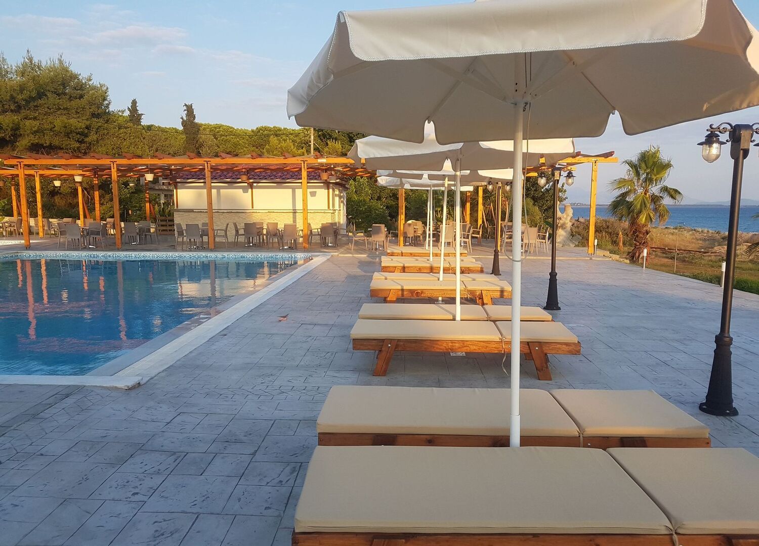 A modern beach hotel with 20 rooms, a 24-hour front desk, a lobby, a breakfast room and a terrace overlooking the pool and the sea. With W-LAN internet access in all areas. Beautiful landscaped garden and parking.