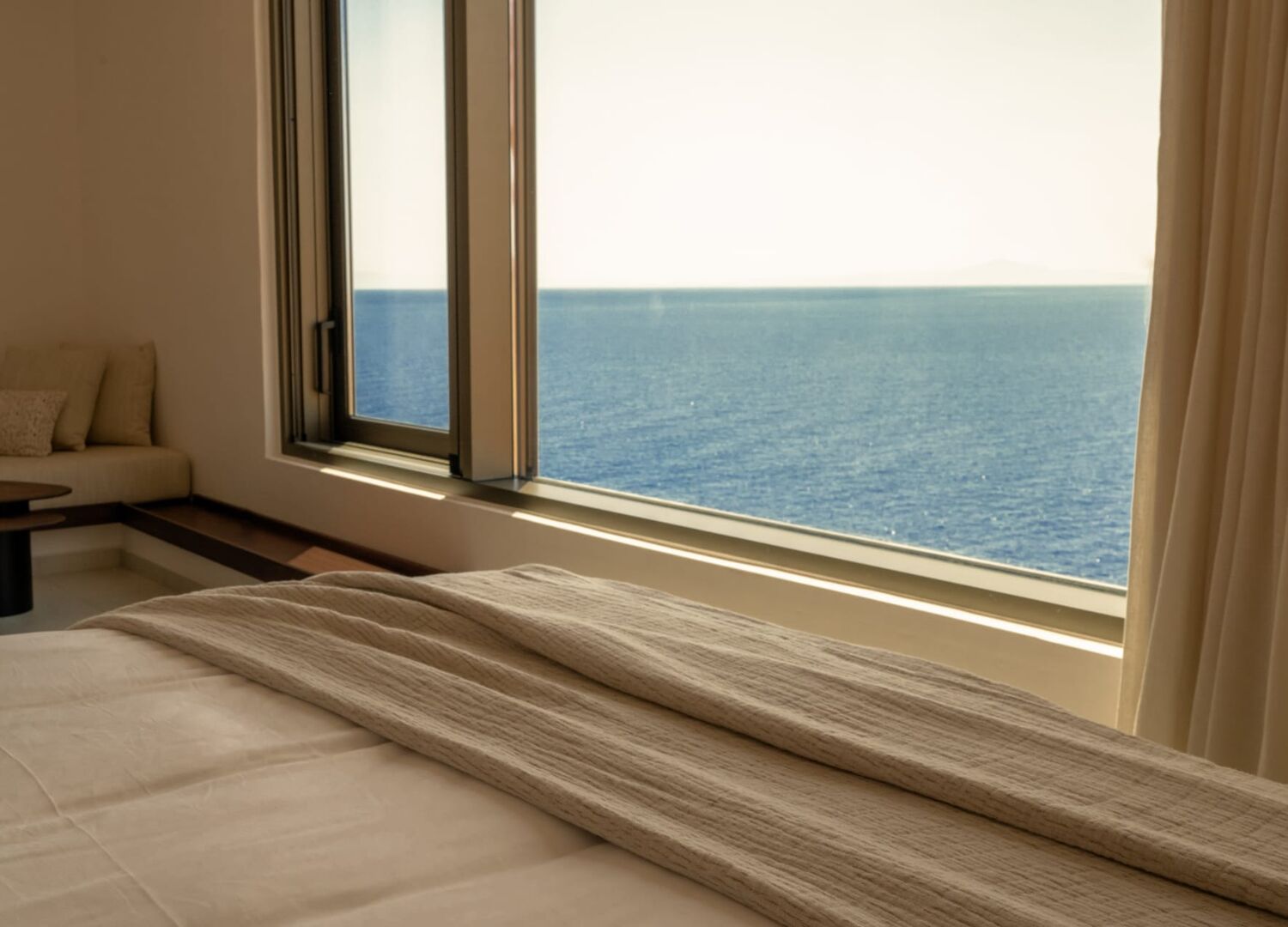 Each suite has been thoughtfully styled with natural textures, earthy tones, and unobstructed views of the Aegean, providing a restful and inspiring stay in one of the Cyclades’ most authentic and poetic settings.