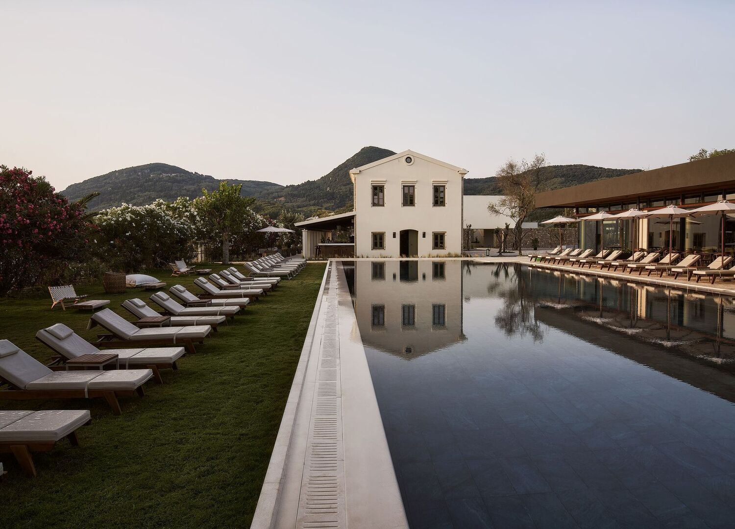The Olivar Suites is a luxury resort located in an ancient olive grove on the southeast coast of Corfu. With elegant design, private pools in most suites, and stunning views of the Ionian Sea, guests can relax and indulge in a tranquil natural setting. The resort offers a premier restaurant, FLYA, serving Mediterranean cuisine, as well as a spa with treatments infused with Greek aromatics. The outdoor pool area provides a perfect setting for relaxation amidst ancient olive trees. Each detail is curated to enhance the tranquility and luxury of your stay, allowing guests to deeply connect with the beauty of Corfu.